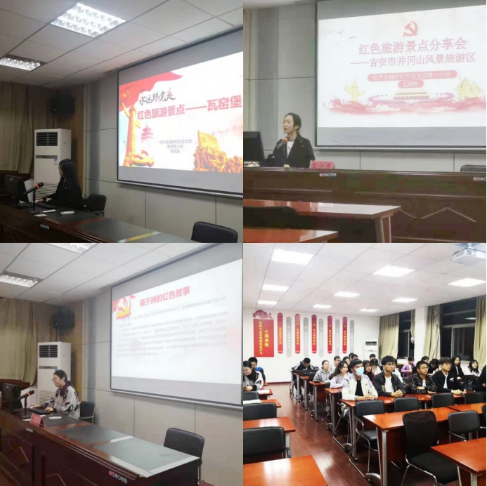 积极分子代表包晓悦给大家分享的是:吉安市井冈山革命根据地,她介绍到:上世纪二十年代末,毛泽东等老一辈无产阶级革命家率领中国工农红军来到这里开展了艰苦卓绝的井冈山斗争,创建了中国第一个农村革命根据地,点燃了中国革命的星星之火,开辟了“农村包围城市,武装夺取政权”具有中国特色的革命道路,中国革命从这里走向胜利;孕育了伟大的井冈山精神,激励无数英雄儿女前赴后继。从此,鲜为人知的井冈山被载入中国革命历史的光辉史册,被誉为“中国革命的摇篮”和“中华人民共和国的奠基石”。