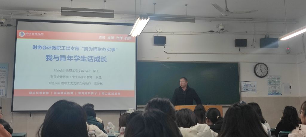 本网讯(m88官网 于琼 陈宇奇)2021年12月9日下午16:30,财务会计教职工党支部“我为师生办实事”系列活动之“我与青年员工话成长”活动在行知楼2020502教室顺利举行。本次活动由财务会计教职工党支部书记徐飞及财务会计教职工党支部党员教师罗昆、高智林三位老师主讲,2019级会计学专业全体同学参与,本次活动由m88官网专职辅导员盛亚琴主持。