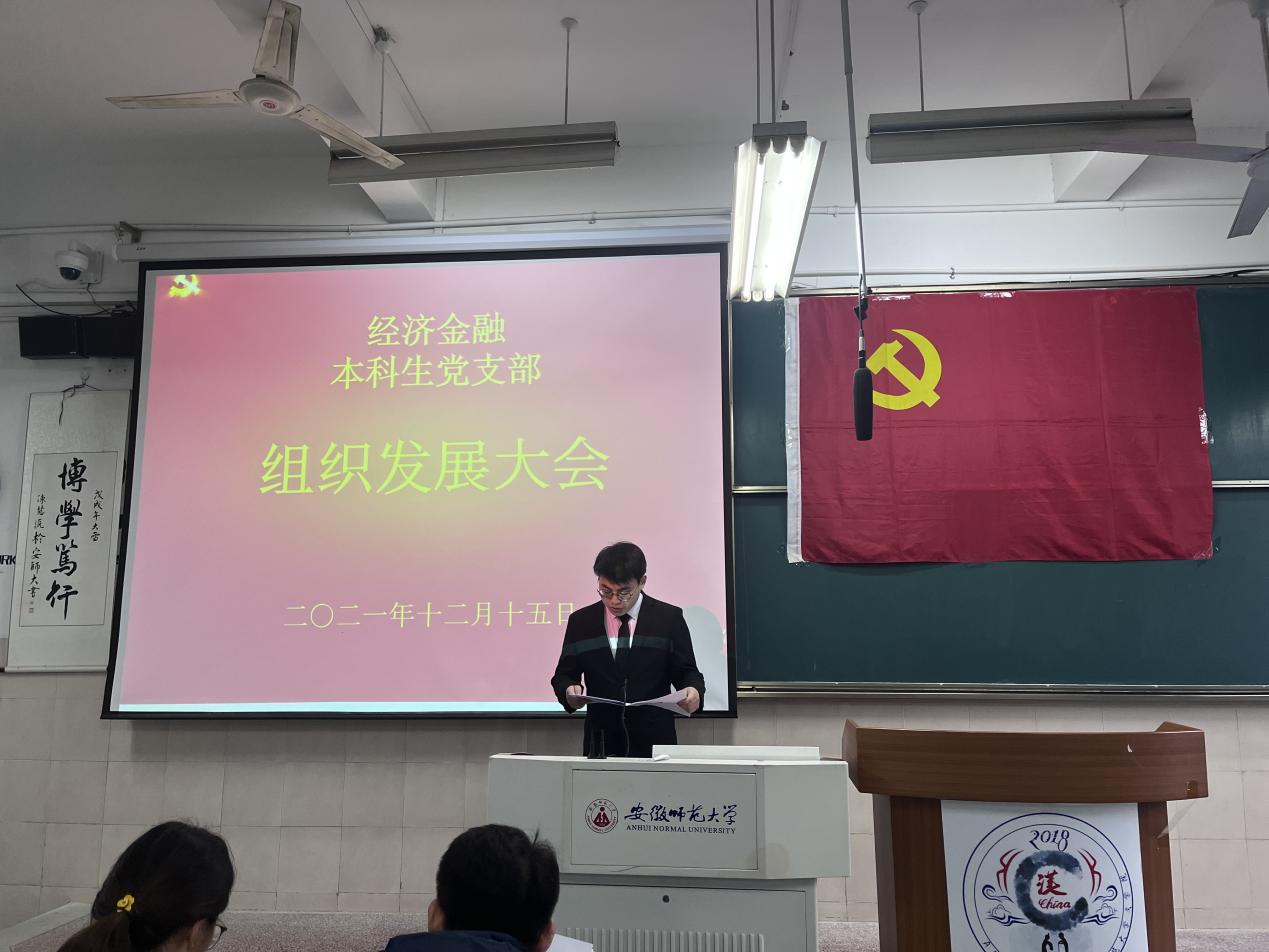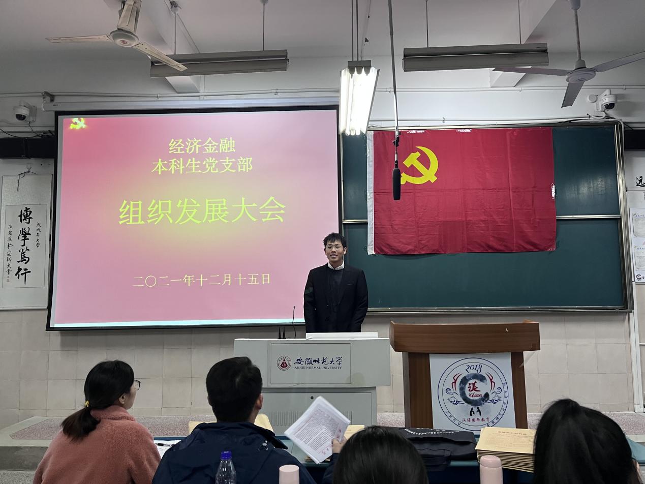 12月15日下午15:30,经济金融本科生党支部于行知楼2050202教室召开了2021年第四批党员发展大会和转正大会,此次大会由党支部书记吴敬之主持召开,支部副主席甘伟出席会议。会议讨论关于郁春浩等八名同志转正、范光伟等十二名同志党员发展的相关事宜。