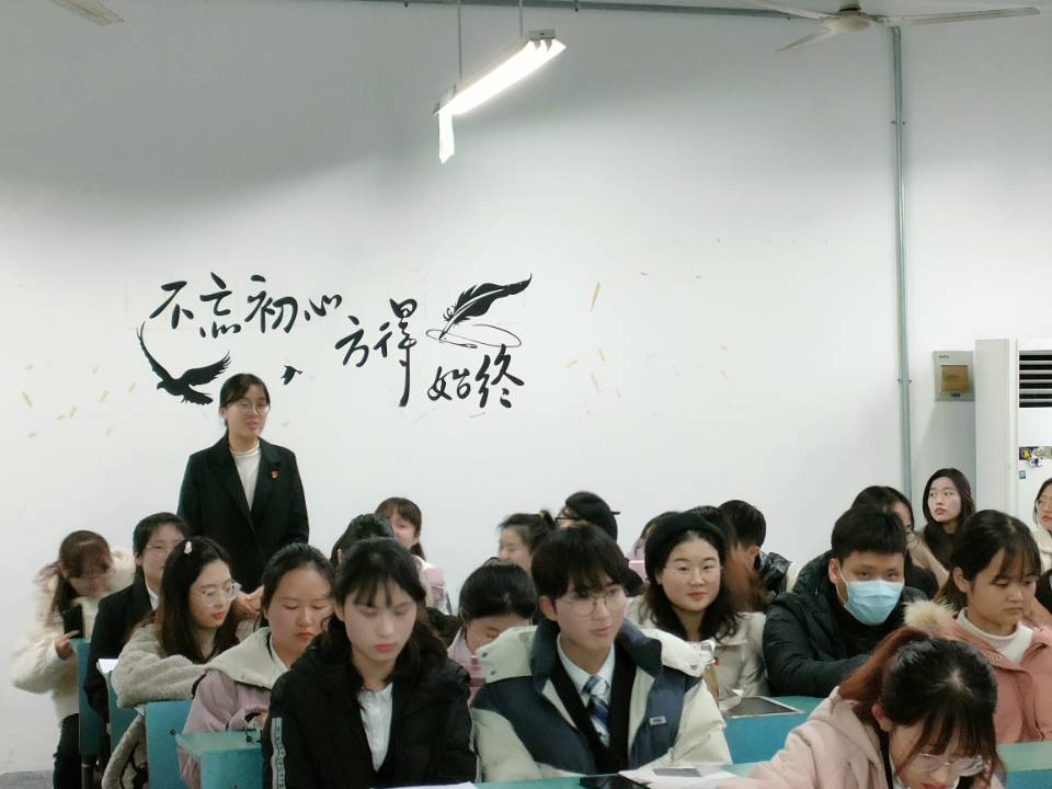 大会伊始,刘胡海首先宣读本次大会议程。大会第一项,全体起立,奏唱国歌。会议第二项,十二位转正申请人依次宣读转正申请书,他们依次说明了在预备期时间里的学习、工作状况,并且分享了自己的考研、工作、实习心得。