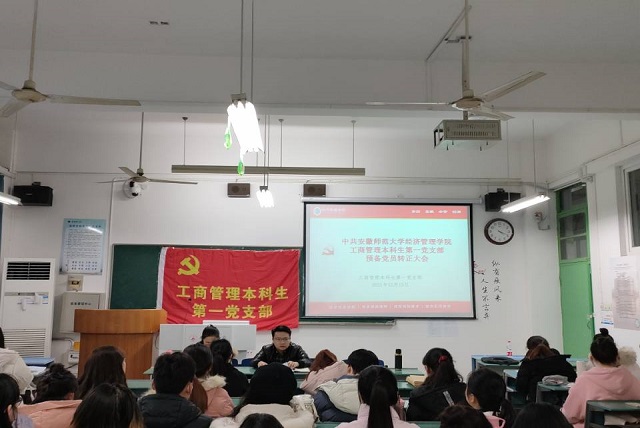 12月15日下午,工商管理本科生第一党支部在7号教学楼2070205教室举行预备党员转正大会,讨论张馨越,朱世婕,缪莹莹,李晚川,储琦,丁妍,朱佳梅,储娟娟,付月香,郑玉莲,李琳,翟子晴十二位预备党员转正问题。大会由支部书记刘胡海主持,党支部副书记盛亚琴老师,于琼老师,正式党员以及预备党员参加。m88官网工商管理本科生第一党支部共有8名正式党员,58名预备党员,因事请假11人,实到55人,有表决权的正式党员8人,与会拥有表决权人数超过半数,符合组织发展相关规定。