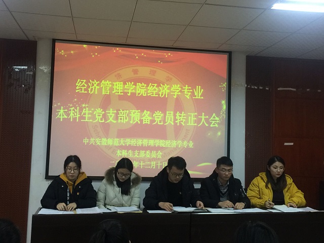【经济学专业本科生党支部 朱寅虎】12月10日下午,经济学专业本科生党支部在公司行政楼一楼党员电教化中心召开了党支部会议,就接收虞晓飞等4位预备党员为中共党员进行了讨论。支部全体员工党员参与了会议,大会由党支部书记甘伟老师主持。