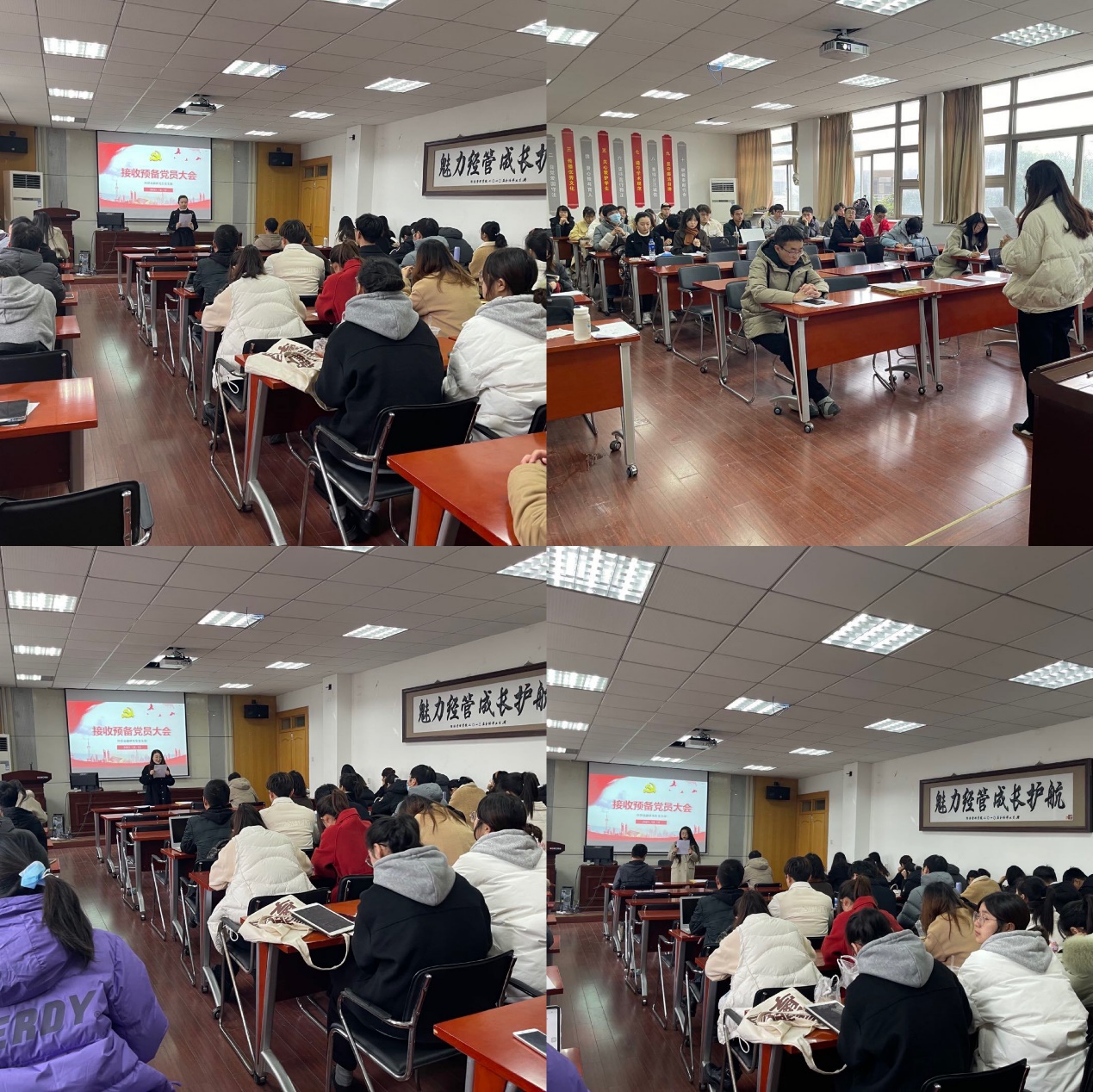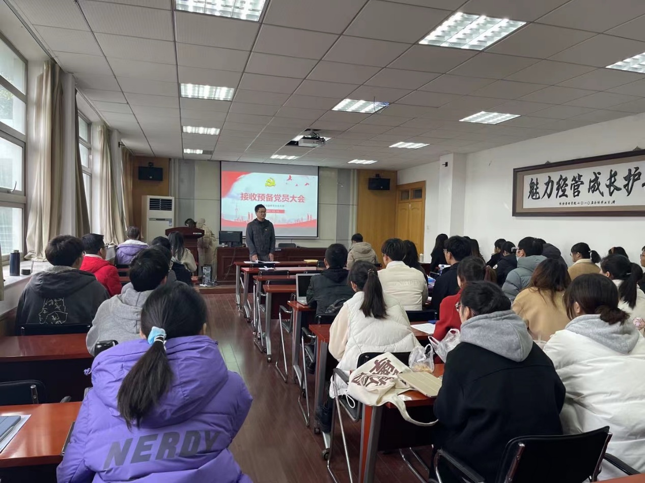 经济金融研究生党支部于2021年12月15日上午在公司二楼报告厅召开接收预备党员支部大会,讨论接收包晓悦等4名同志为中共预备党员,大会由支部书记陈龙主持,支部全体党员参加此次会议,入党积极分子到会观摩。