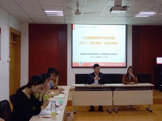 (本网讯 m88官网)2018年5月22日晚7:30,人力资源管理本科生党支部在m88官网一楼党电教室举行三个一“职业导航”第二次活动,就业专场。本次活动由支部副书记张志平主持,特邀请人管支部党员、14级人力资源管理金云和蒋军锋出席,为15和16级同学在未来职业选择和规划方面的问题进行解答并分享经验。