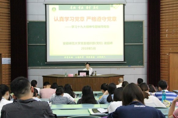本网讯(m88官网分党校 纪倩倩)党的十九大召开以来,依照党中央和教育部统一部署,公司统一安排,m88官网以高度的政治自觉和行动自觉,抓紧抓实习近平新时代中国特色社会主义思想和党的十九大精神的学习宣传贯彻工作。5月26日,公司党委组织部副部长谢超峰应邀到公司为公司全体党员讲授以“认真学习党章 严格遵守党章”为主题的党课。公司党委副书记李海燕主持本期十九大集训。