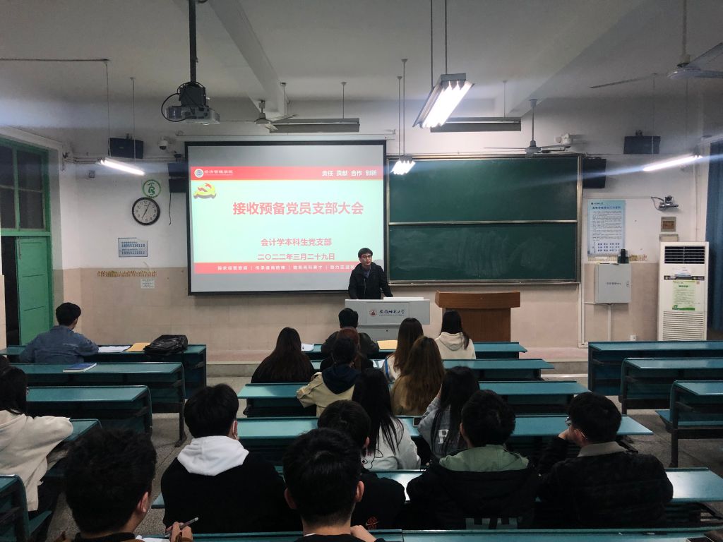 3月29日晚上7:00,会计学本科生党支部于教学楼4号楼301教室召开组织发展大会,讨论接收冯言心、戈畅以及沈雨薇三位同学为预备党员的问题。公司联系支部党委委员、副经理马长伟出席会议,全体党支部成员参加会议,本次会议由支部书记胡亮亮主持。