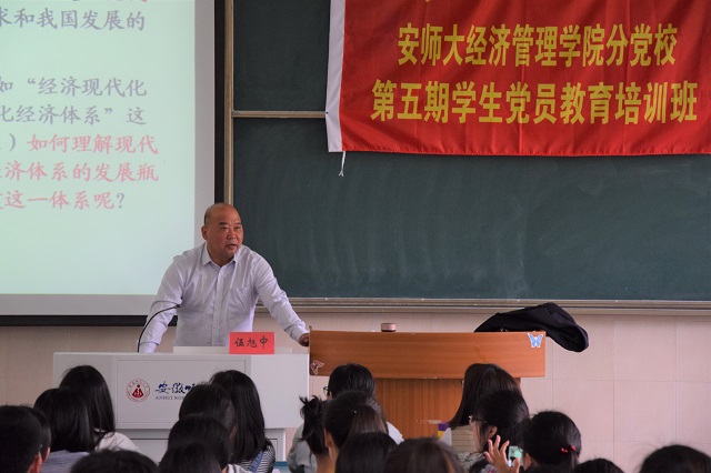 本网讯(m88官网分党校 纪倩倩)党的十九大报告提出的建设现代化经济体系,对我国经济闯关创新驱动、转型升级具有重大意义,那么如何才能构建具有中国特色的现代化经济体系呢?4月22日上午9点,在m88官网分党校第五期员工党员教育培训班上,伍旭中教授结合党的十九大报告为大家带来以“构建中国特色的现代化经济体系”为主题的辅导报告。