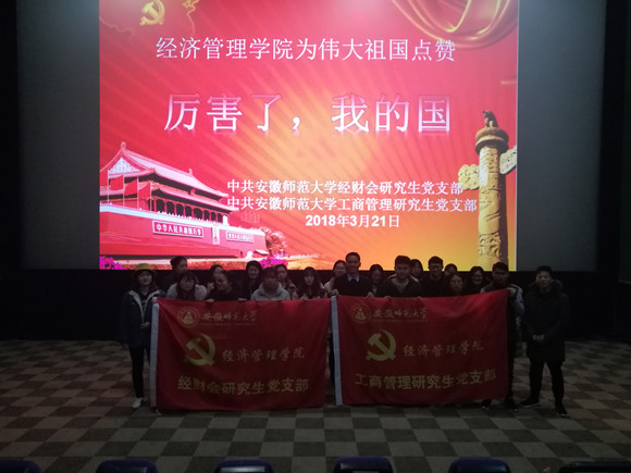 本网讯(m88官网 孙银玉 周琪)为深入学习贯彻党的十九大精神,体会改革开放40周年建设伟大成果,2018年3月21日15:00, m88官网工商管理研究生党支部和经财会研究生党支部组织了《厉害了,我的国》纪录片观影活动,此次活动在中影国际影城芜湖弋江柏庄店举行。