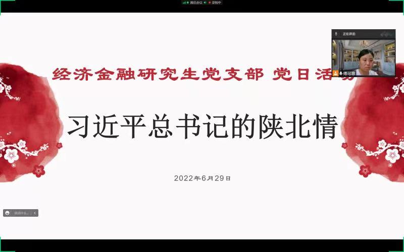 6月29日,经济金融研究生党支部开展线上党日活动,本次活动以习近平总书记的陕北情为主题。活动由支部宣传委员傅可意主持,支部全体党员和积极分子参加。