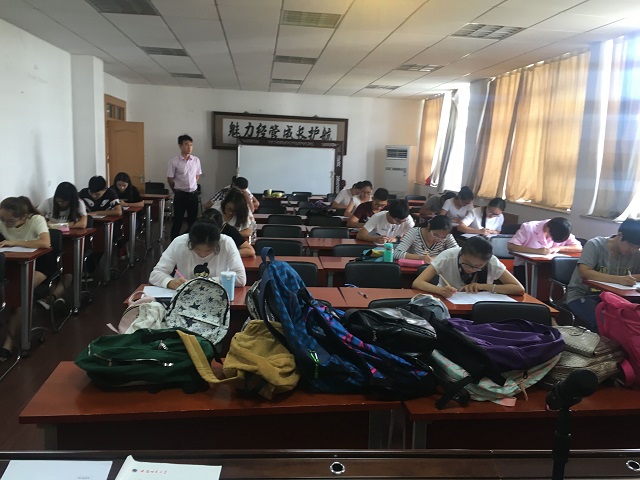 本网讯(2014、2015级本科生党支部 陆帆)为巩固和检验“两学一做”学习教育成果,进一步促进党章党规学习落实,增强员工党员干部遵规守纪尽责意识,831日,m88官网2014、2015级本科生党支部在行政楼二楼报告厅举行了党规知识测试,党支部24预备党员参加了测试支部书记安广虎负责本次考试的监考工作。