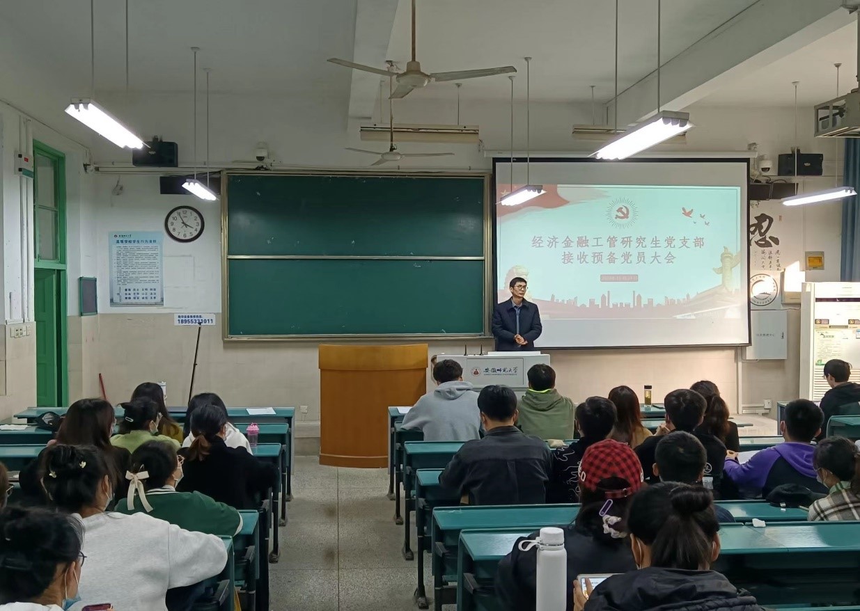 11月24日下午,经济金融工管研究生党支部在2号教学楼101教室举行接收预备党员大会,讨论接收汪勇、陈靖雯、江琴、刘晓舟、刘美玉、岳香静六位同志为中共预备党员的问题。公司党委委员马骥老师,支部书记陈龙老师出席会议,大会由支部副书记陈梦主持。