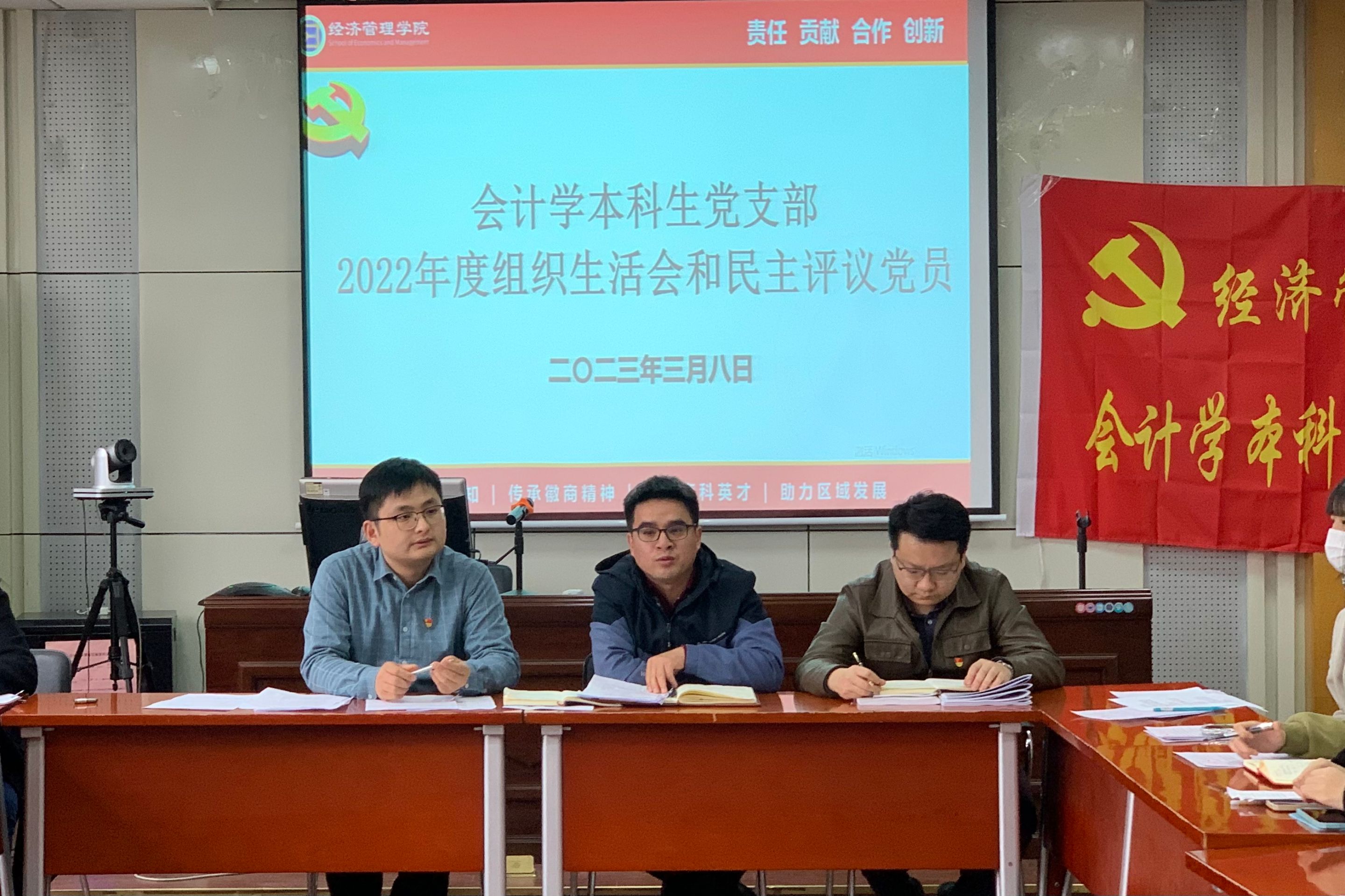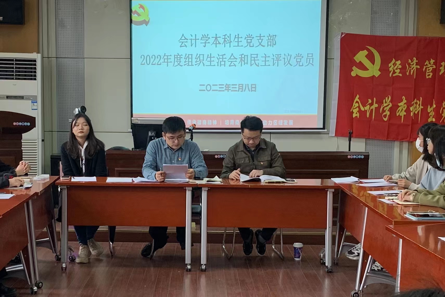 3月8日下午,会计学本科生党支部在m88官网二楼报告厅召开组织生活会和民主评议党员工作会。会议由党支部书记胡亮亮主持。