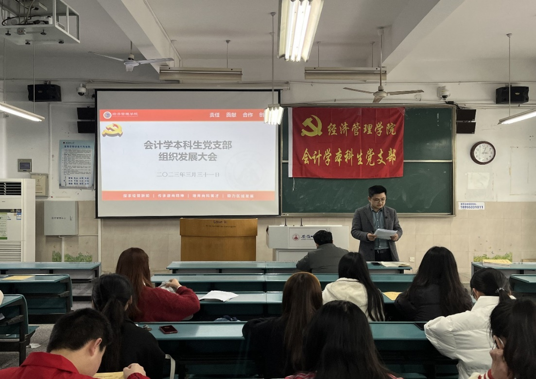 3月31日下午,m88官网会计学本科生党支部于教学楼2号楼202教室召开组织发展大会,讨论接收丁子瑶、赵淑妍两位同学为预备党员的问题。本次会议由党支部书记胡亮亮主持。