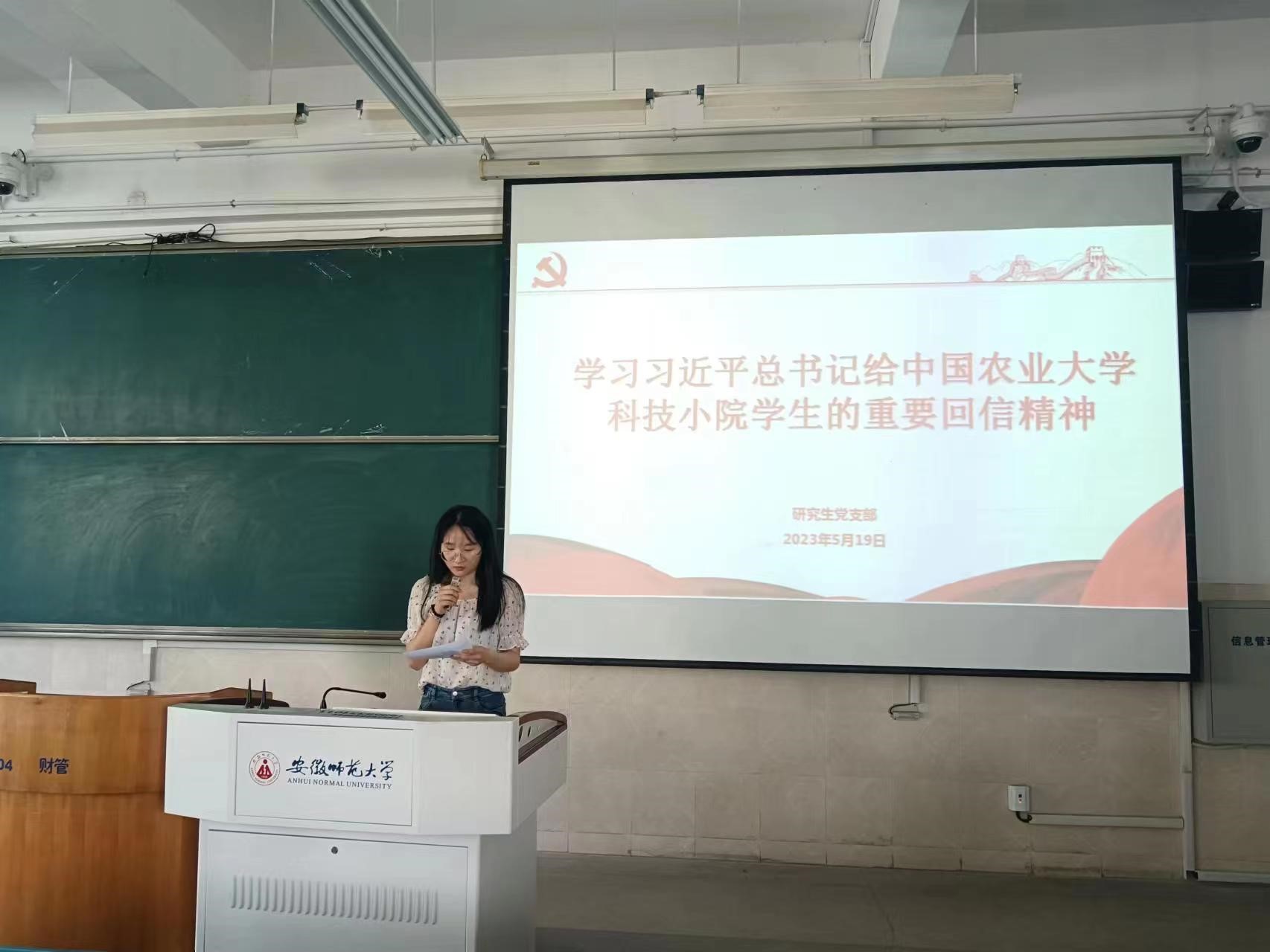 2023年5月19日上午,经济金融工管研究生党支部开展了学习习近平总书记给中国农业大学科技小院的员工回信精神主题党日活动,支部全体党员参加,活动由支部书记陈龙老师主持。