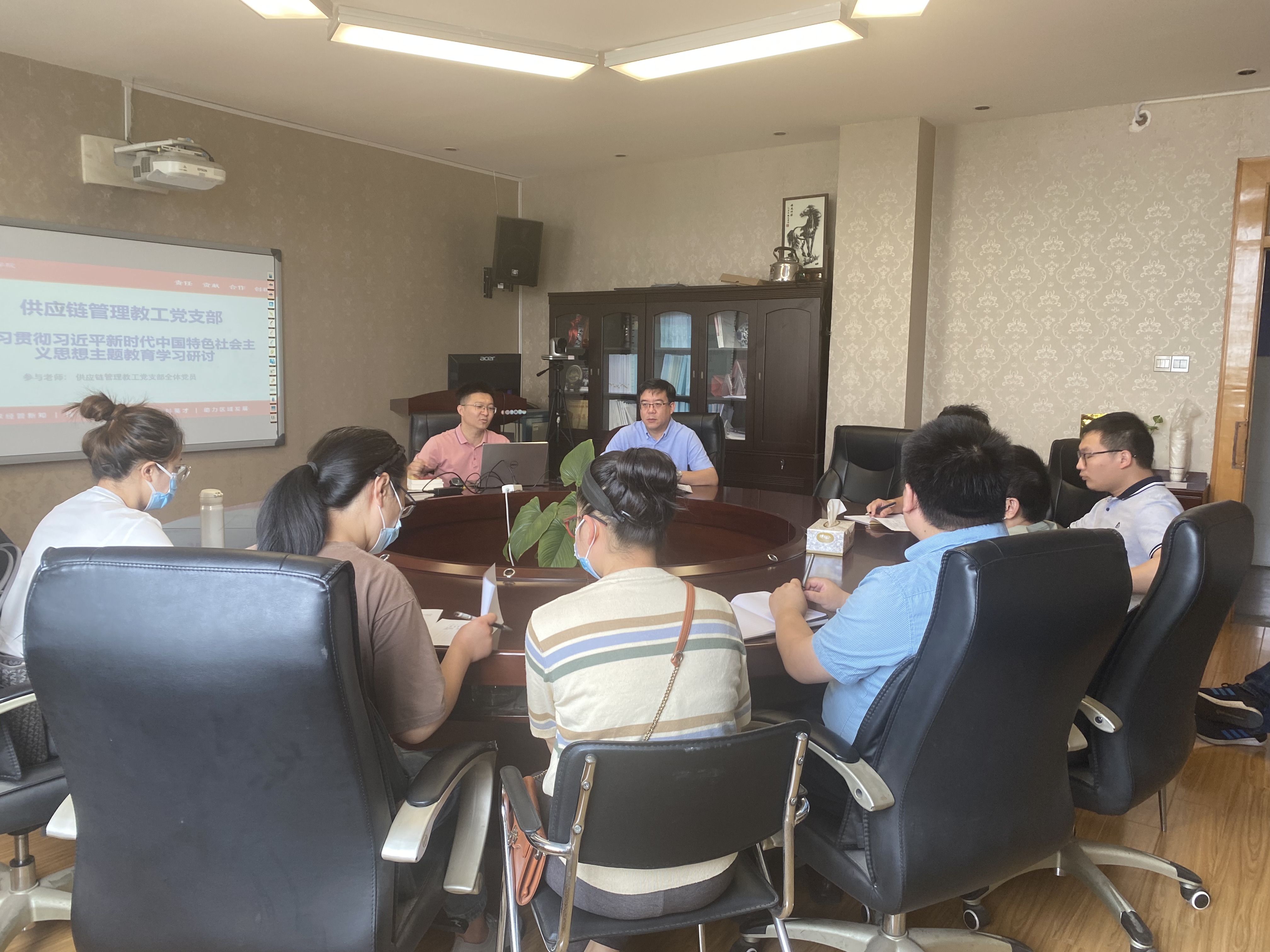 6月4日上午9时,m88官网供应链管理教工支部开展学习贯彻习近平新时代中国特色社会主义思想主题教育专题党课和专题研讨活动,切实加强党员的思想政治理论学习,提高党员的公司产品能力。