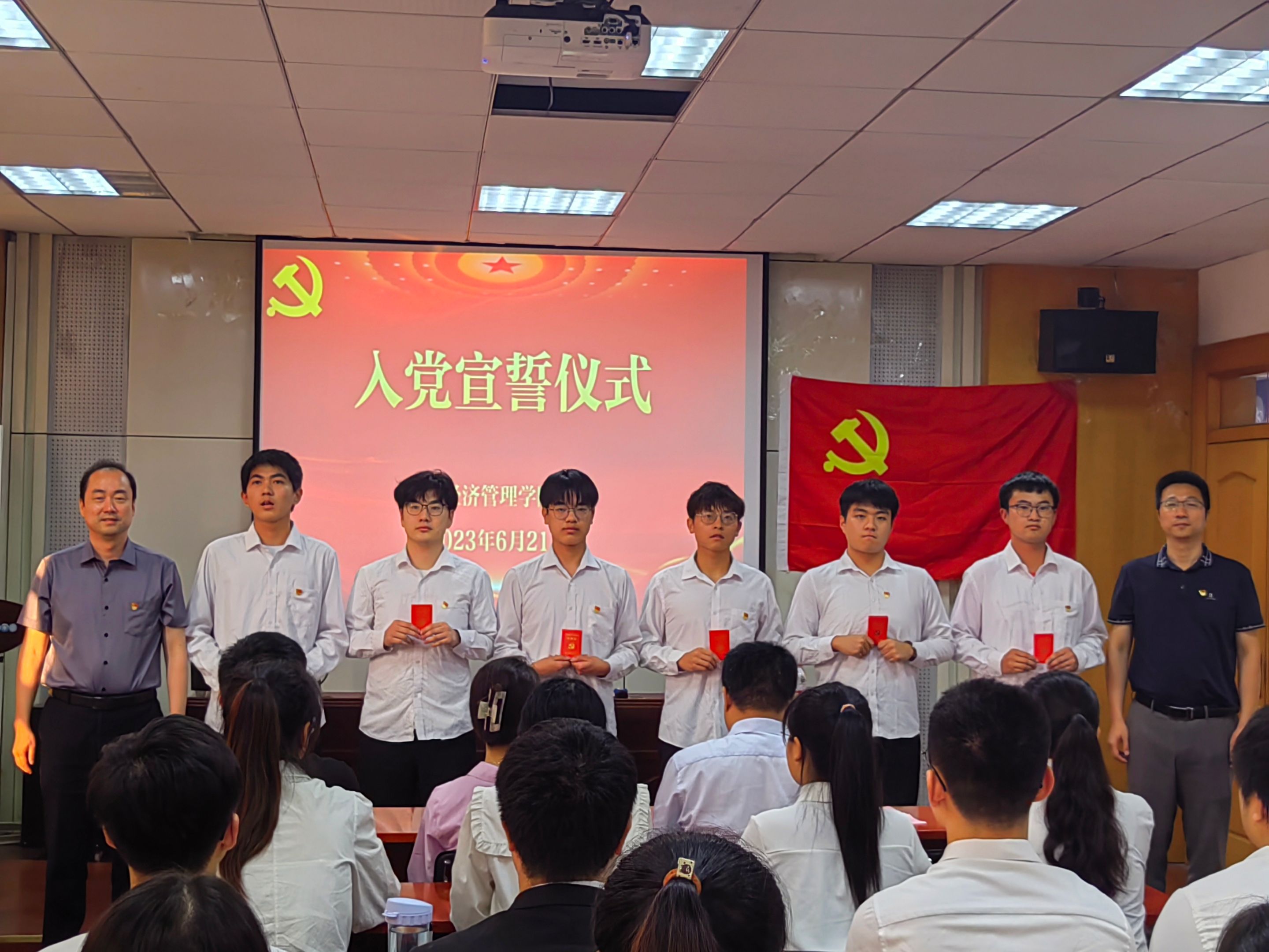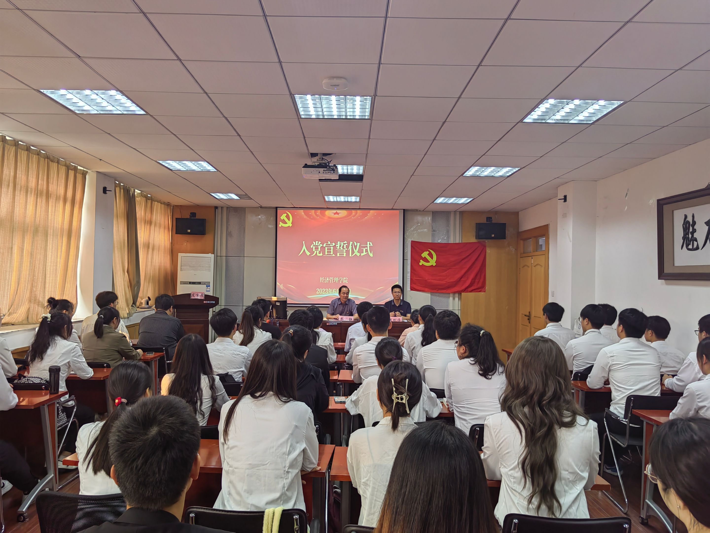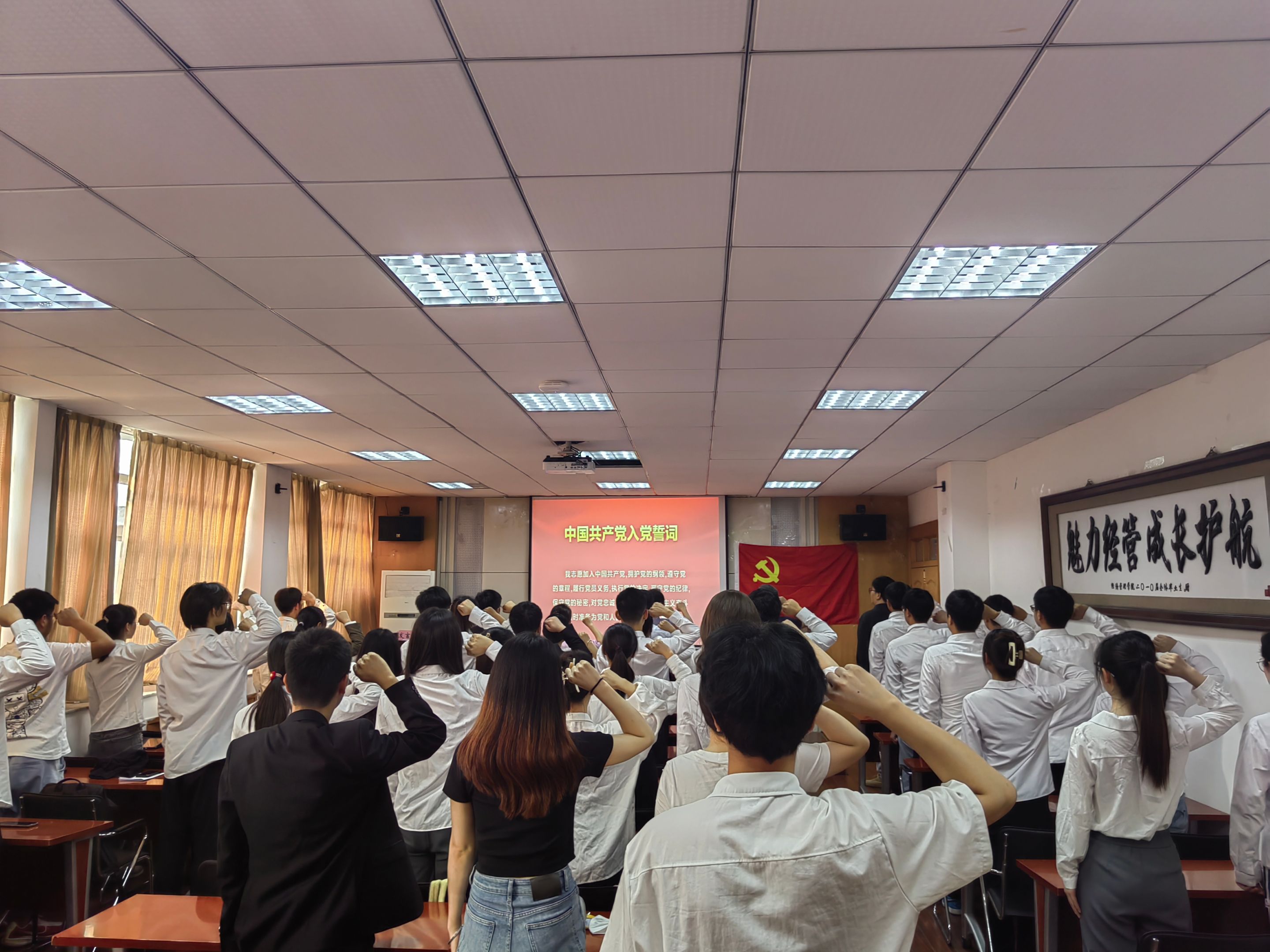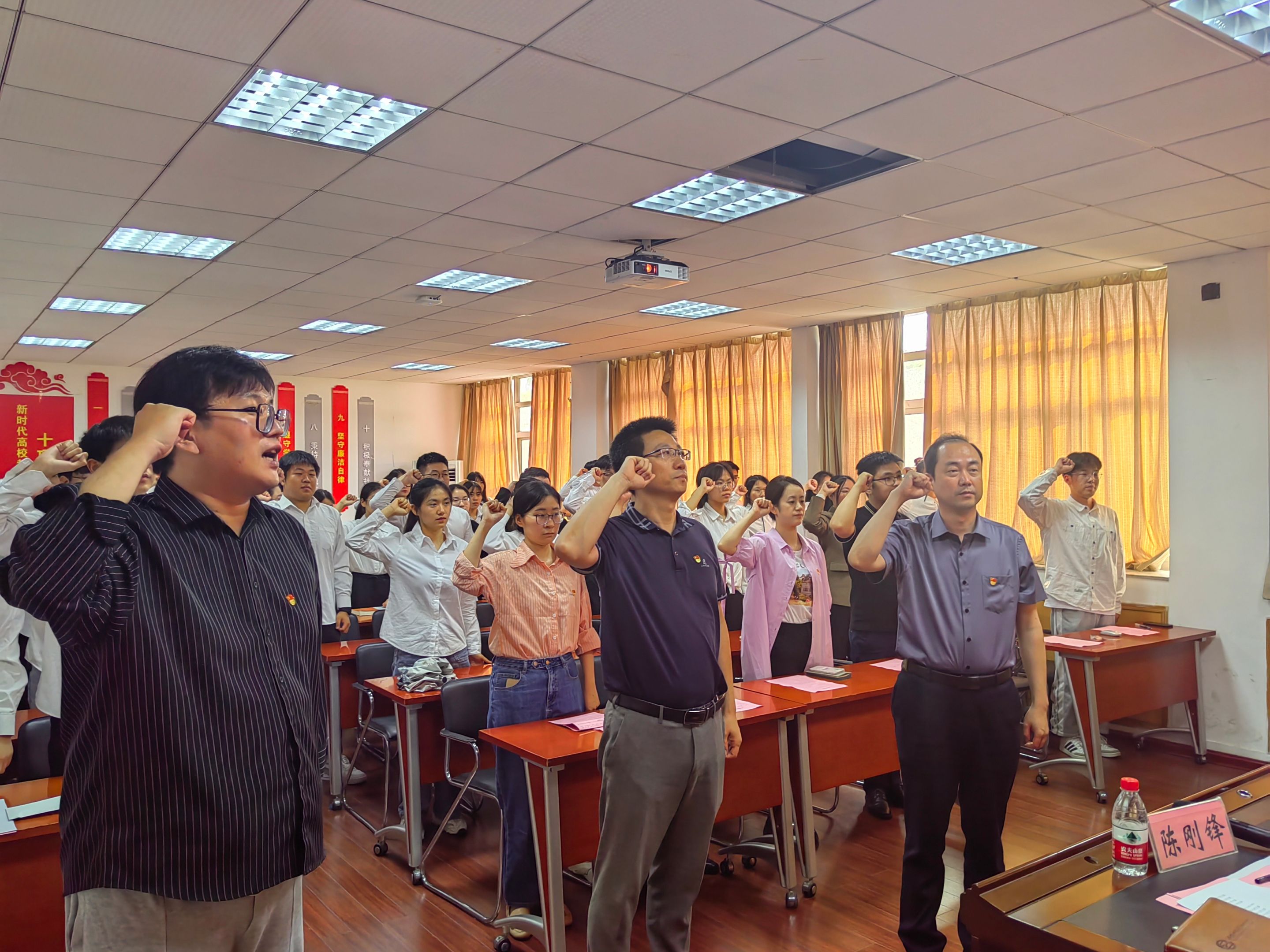2023年6月21日下午,m88官网举办新党员入党宣誓仪式。党委书记乔静、党委副书记陈刚锋、各支部书记和2023年上半年新发展预备党员参加仪式。
