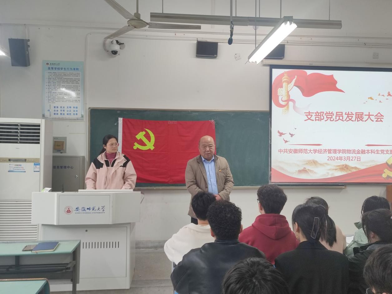 3月27日下午,物流金融本科生党支部在行知楼2070105召开支部大会,讨论接收中共预备党员事宜,会议由支部书记盛亚琴主持,公司党委委员、副经理伍旭中应邀出席指导,支部全体党员参会。