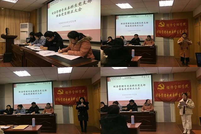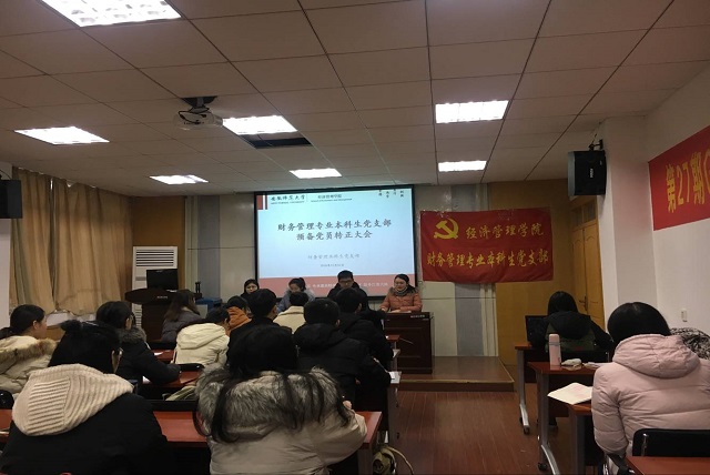 本网讯(财务管理专业本科生党支部 文/吴瑶瑶 图/余潞)2018年12月10日,财务管理专业本科生党支部在公司行政楼二楼报告厅召开支部转正大会,讨论孙雅弘,廖声虹,袁婉悦三名预备党员转正问题,大会由支部书记胡亮亮老师主持,支部全体党员及财管支部入党积极分子代表出席会议。