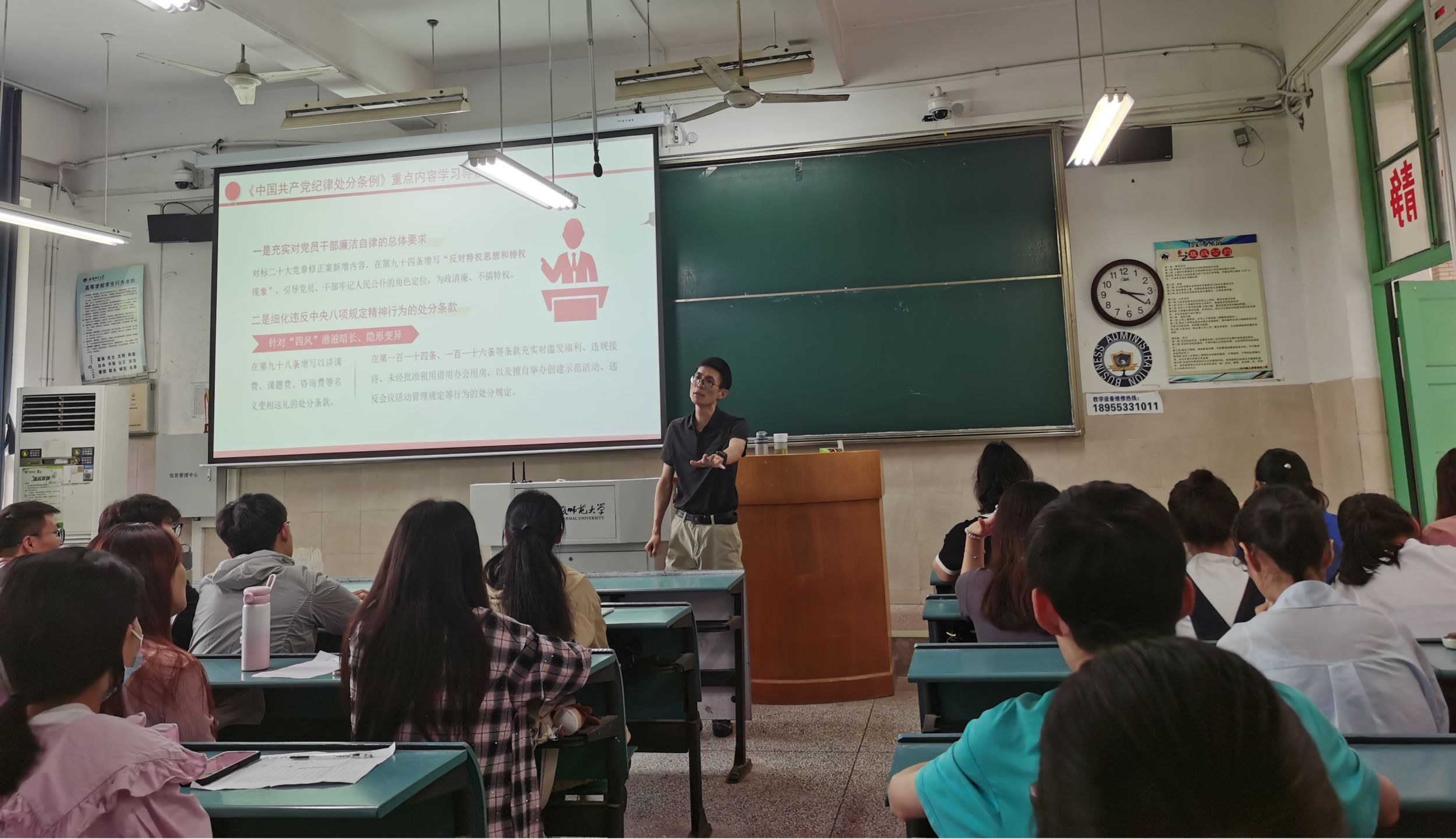 在专题党课上,马骥首先提问了为什么要对《中国共产党纪律处分条例》(以下简称《条例》)进行修订,杨蓉蓉同学回答在党的各项纪律中,政治纪律最重要、最根本、最关键,严明党的纪律,首要的就是严明政治纪律。接着,马骥介绍了《条例》修订的三大背景,通过政治纪律、组织纪律、廉洁纪律、群众纪律、工作纪律、生活纪律六个方面对新增条例和修改条例进行了深入浅出的解读,并结合自己的学习体会与工作经验,生动阐述了党纪学习教育的重要意义,要求党员干部要坚持底线思维,敬畏纪律,保持党的先进性和纯洁性,时刻摆正自己的位置,牢记第一身份是党员、第一职责是为党工作。