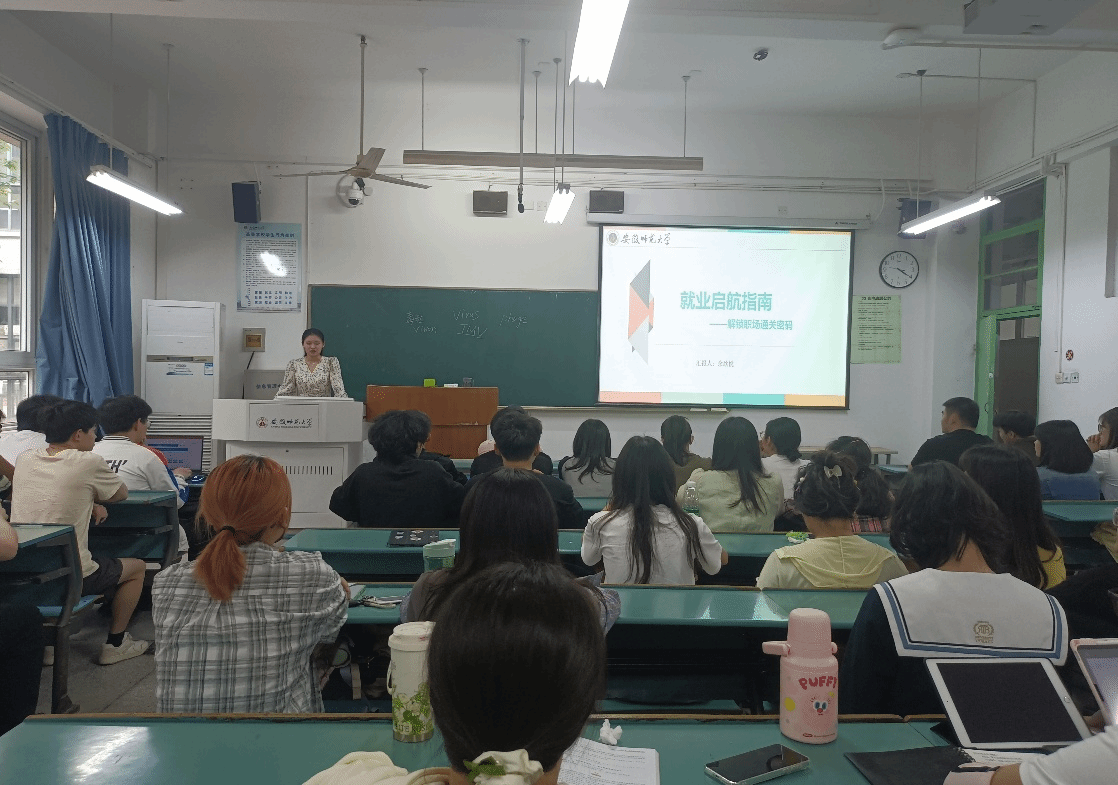 余欣悦首先向大家分享了撰写简历的经验,介绍了简历的基本内容与模板等;随后她分享了企业求职的经验,鼓励大家向自己心仪的企业投递简历等。同时她建议同学们做好多元的发展规划,可在考研、考公、求职之间搭配进行规划发展。