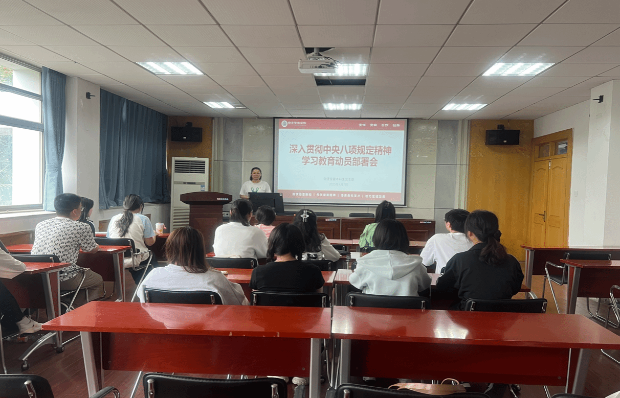4月7日下午,物流金融本科生党支部召开深入贯彻中央八项规定精神学习教育动员部署会,深入学习贯彻习近平总书记关于加强党的作风建设的重要论述,传达学习中央、省委、公司党的建设工作领导小组会议和有关通知精神,启动部署支部学习教育工作。党支部书记盛亚琴主持会议,支部全体党员参会学习。