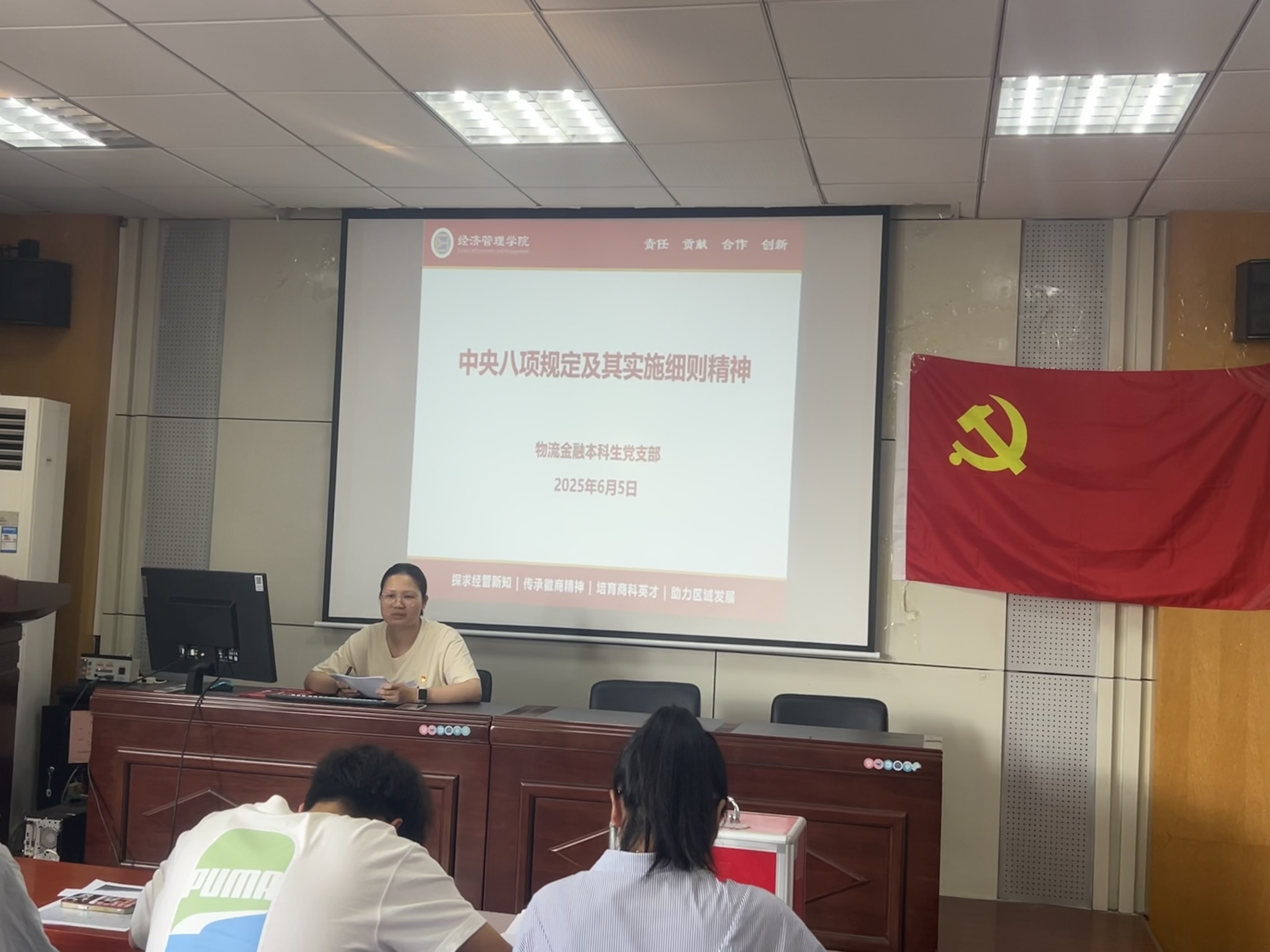 为进一步提升党纪意识,6月5日下午,物流金融本科生党支部开展深入贯彻中央八项规定精神学习教育集中学习研讨,会议由党支部书记盛亚琴主持,支部全体党员参会学习。