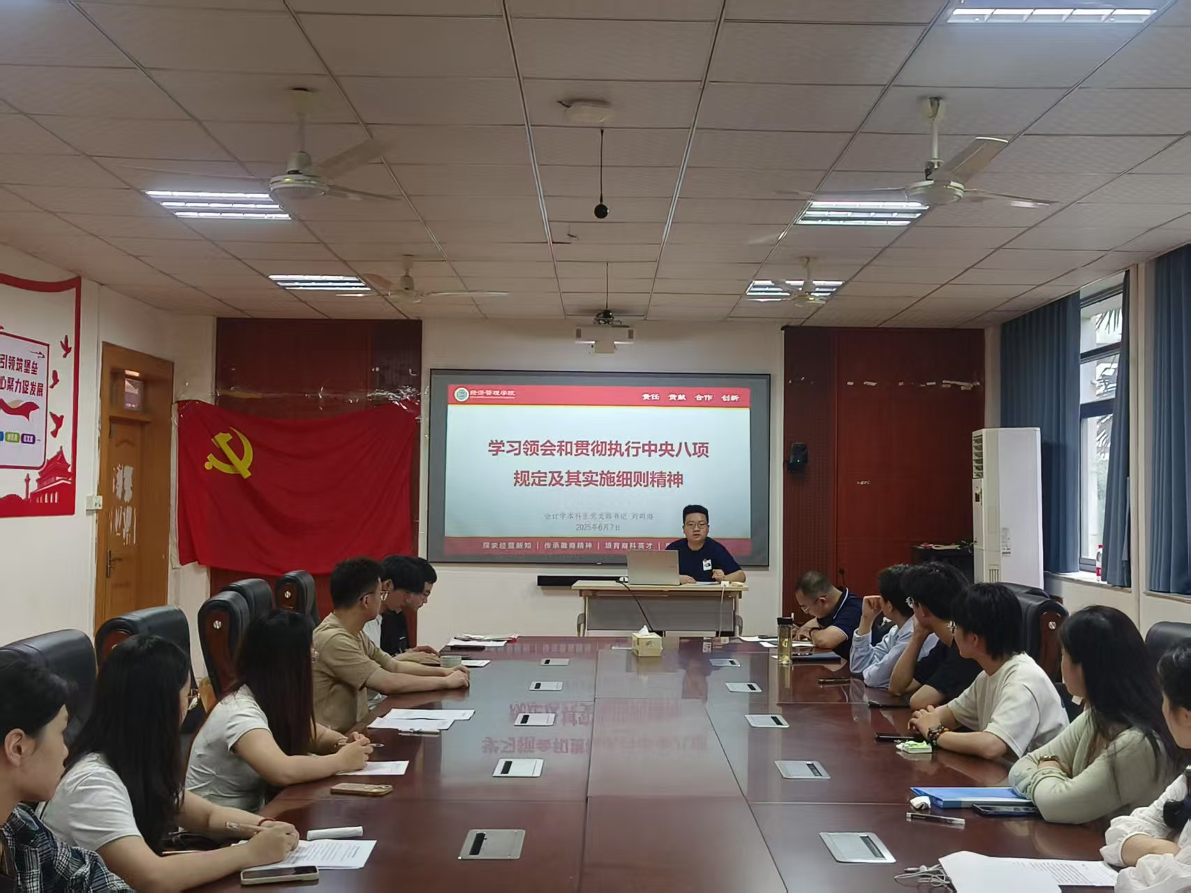 6月7日上午,会计学本科生党支部在公司二楼报告厅召开学习领会和贯彻执行中央八项规定及其实施细则精神专题党课。本次党课由党支部书记刘胡海主讲,支部全体党员参加。