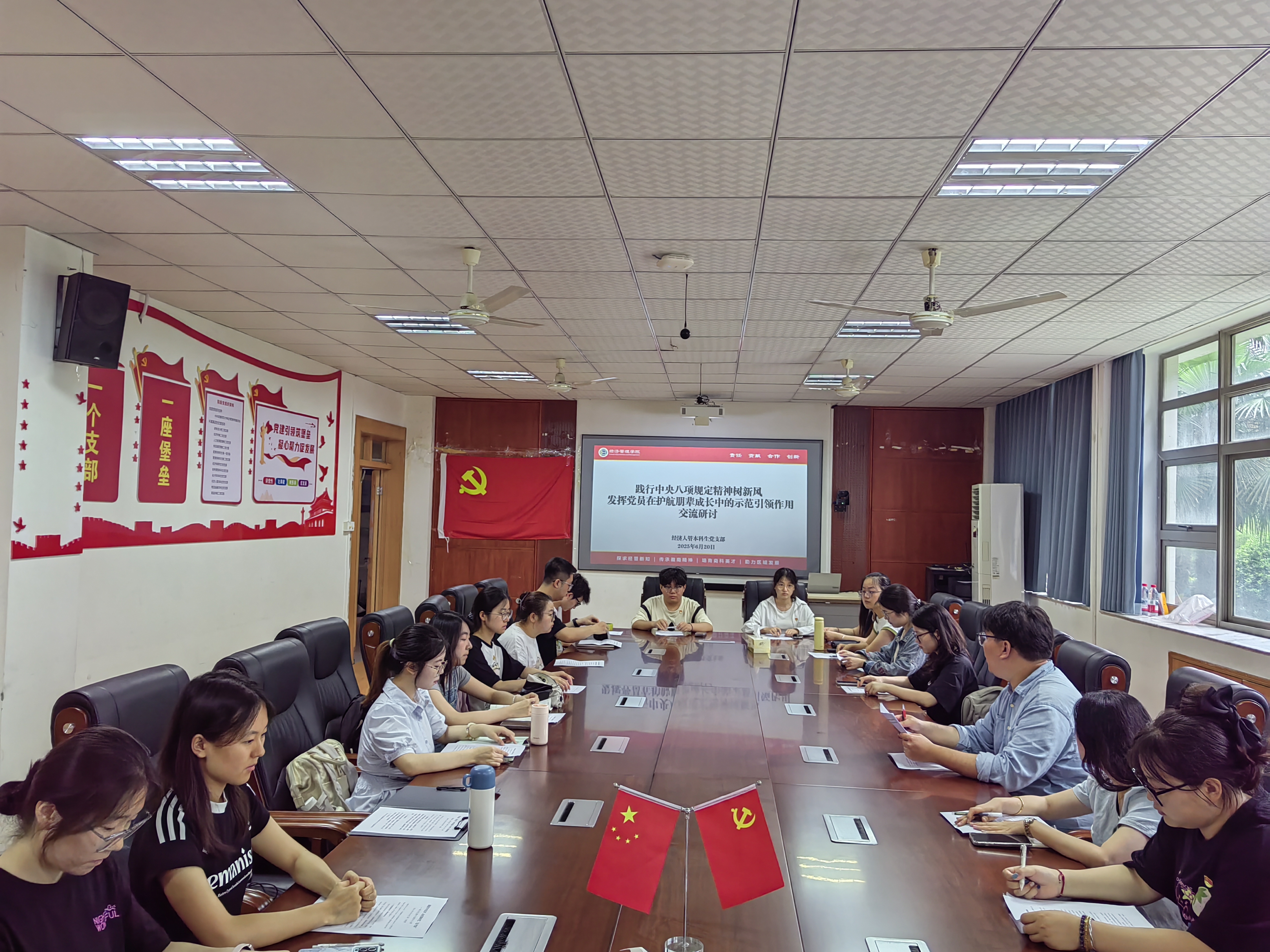 2025年6月20日下午,经济人管本科生党支部在公司一楼党教会议室开展“践行中央八项规定精神树新风,发挥党员在护航朋辈成长中的示范引领作用”交流研讨。经济人管本科生党支部书记吕洋、党支部副书记付擎和党支部员工党员全体参加本次研讨。研讨会由吕洋主持。