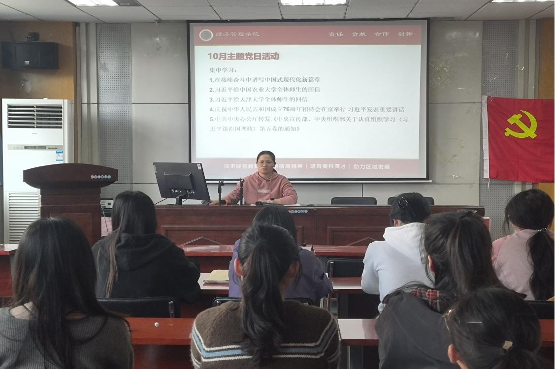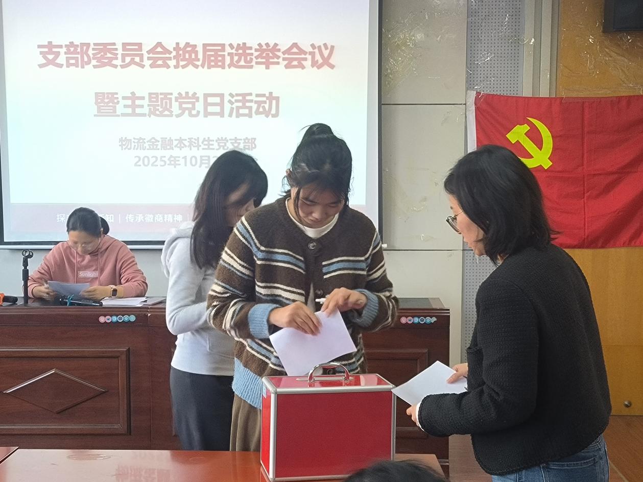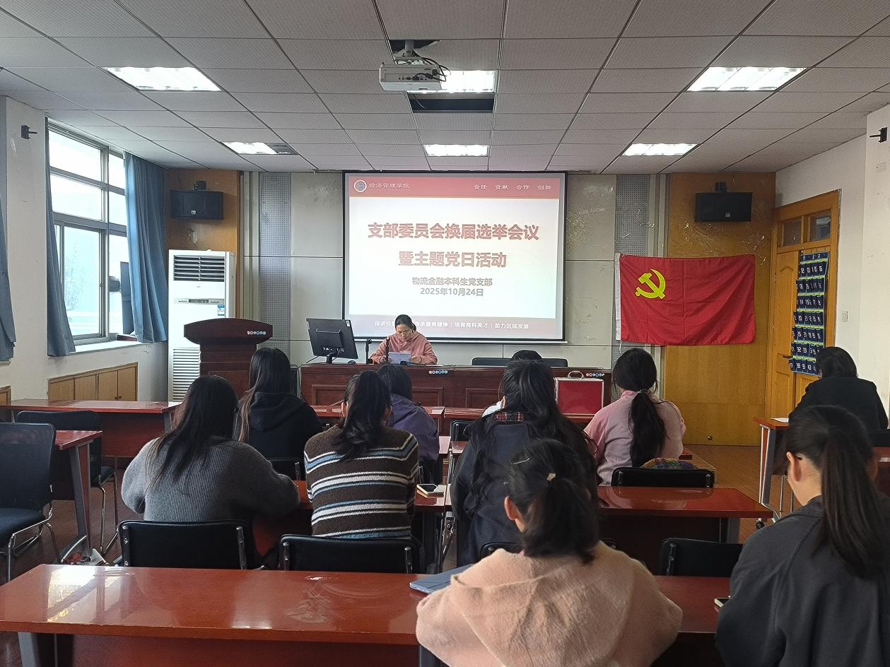 10月24日下午,物流金融本科生党支部在公司二楼报告厅开展支部委员换届选举会议暨主题党日活动,会议由党支部书记盛亚琴主持,支部全体党员同志参会。