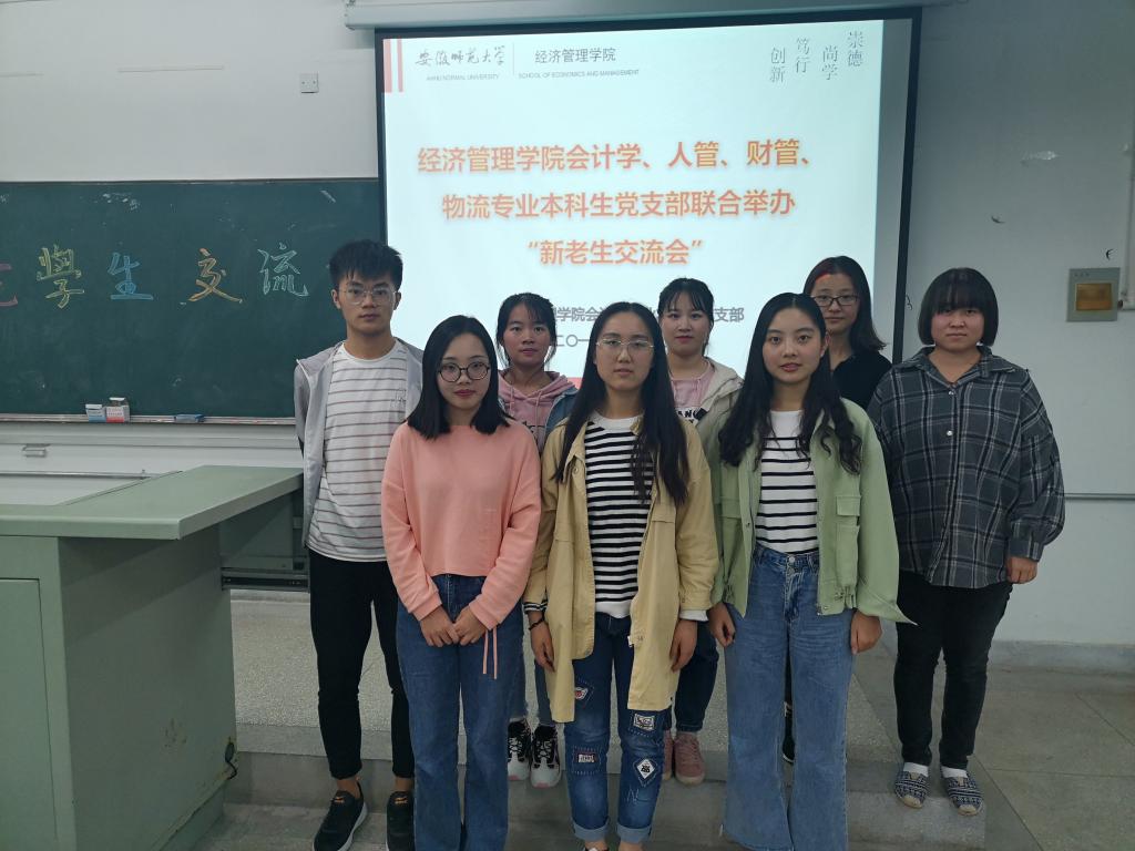 本网讯(物流管理专业本科生党支部)10月15日晚上,m88官网会计学、人管、财管、物流专业本科生党支部在行知楼2070101联合举办“新老生交流会”,会议由2016级会计学专业的张甜洁同学主持,与会人员有2019级工商管理三班、四班的新生及各党支部的老生代表。