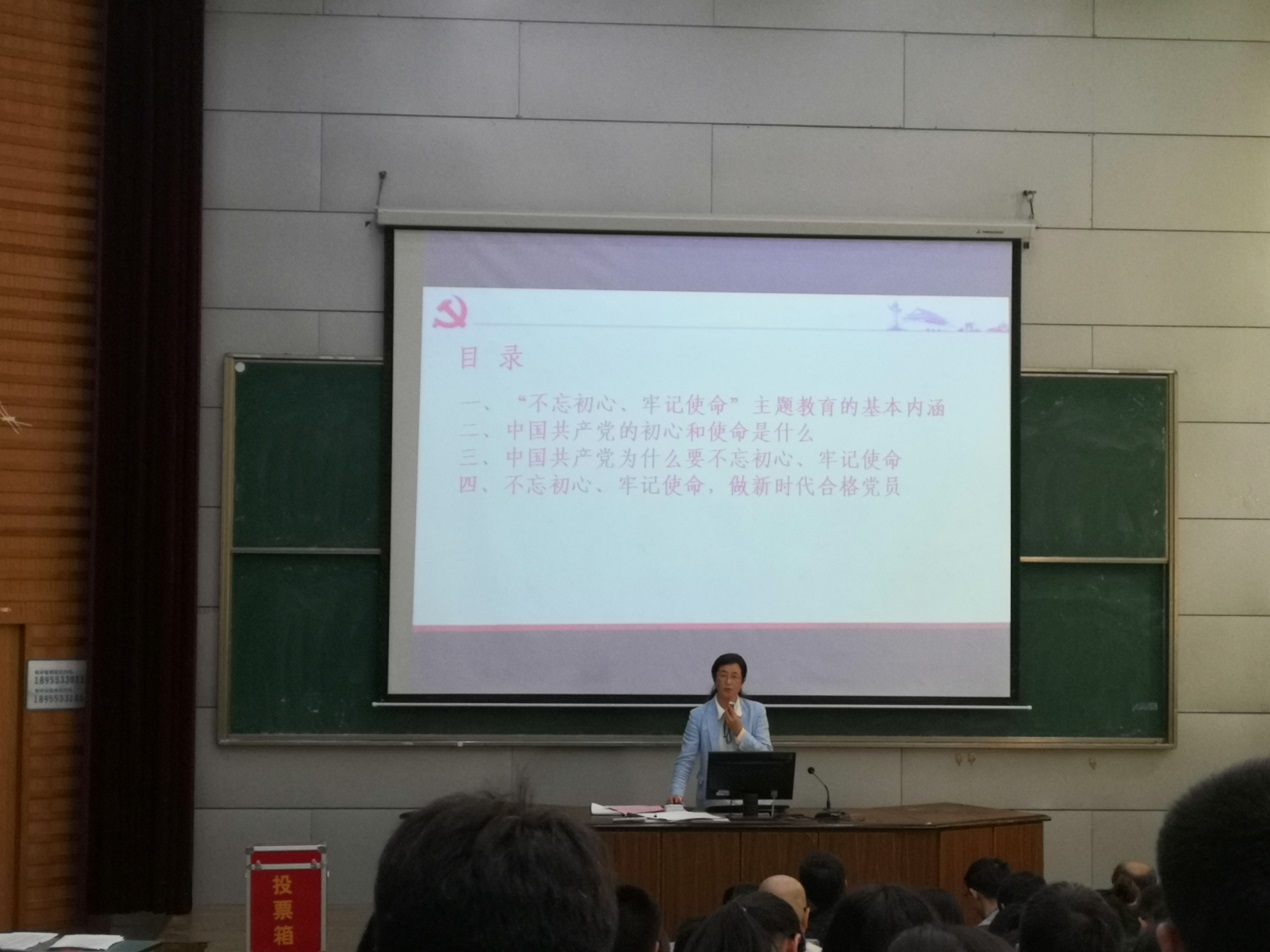 在计票人计票时,公司党委书记陈秀庆老师主持开展了 “不忘教育初心、牢记育人使命”主题教育党课。通过此次党课,公司全体党员对此次“不忘初心、牢记使命”主题教育有了更加深刻和系统的理解。