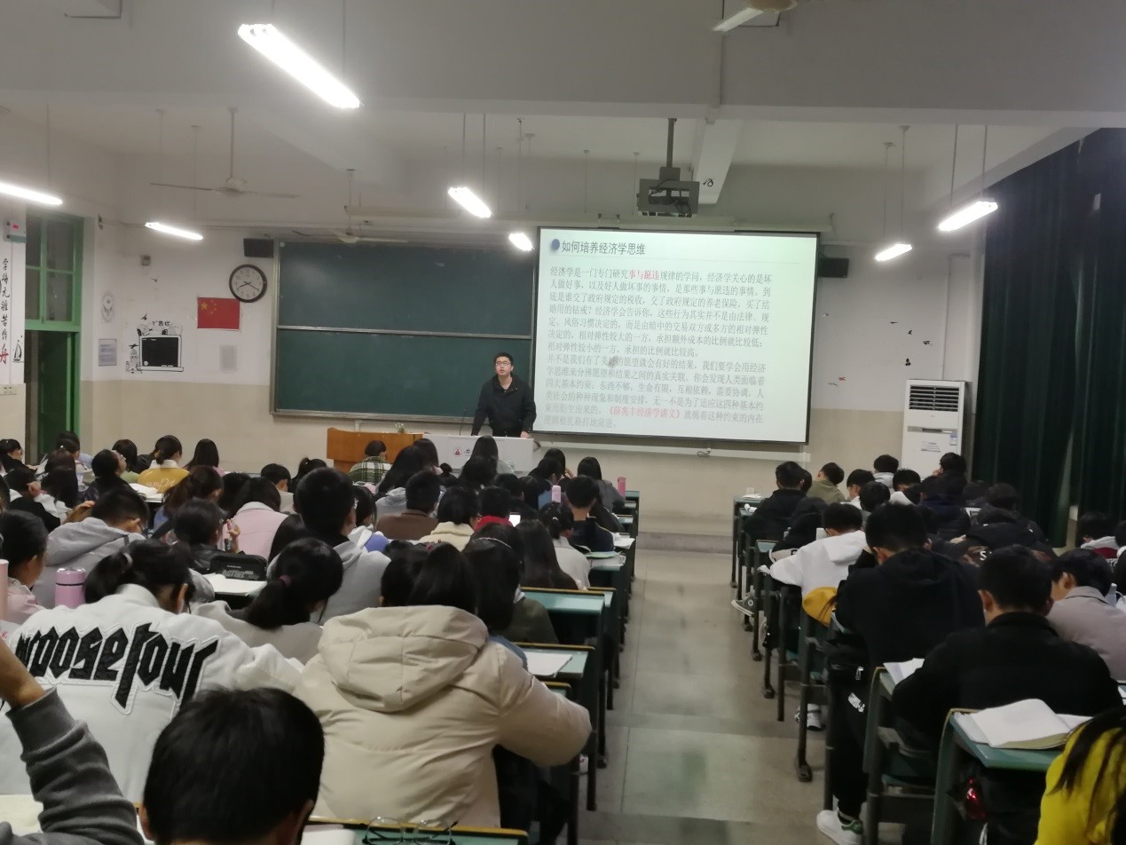 【经济学专业本科生党支部 左幸福】11月18日晚,经济学专业本科生党支部在行知楼2010503教室举行了优秀员工党员学习交流会。三位2016级优秀员工党员赫庆华、胡文玲、康健作为主讲人,2019级经济学类1班和2班的全体同学参加了此次交流会,交流会由胡文玲同志主持。