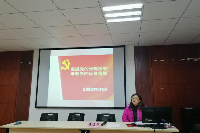 本网讯(财务管理专业本科生党支部 文/马利芳)为深入学习习近平总书记关于“不忘初心,牢记使命”的重要论述,加强革命传统教育,增强全体党员的责任意识和党性修养。11月30日下午,在行政楼一楼党电化教室,财务管理专业本科生党支部组织开展了专题党课——重温党的光辉历史,承载党的优良传统。专题党课由公司党委副书记李海燕主讲。