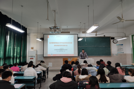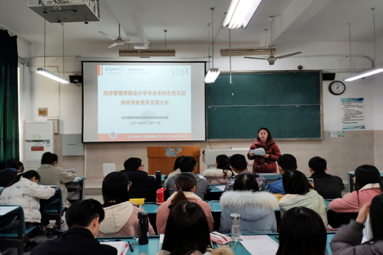 本网讯(会计学专业本科生党支部 王瑞)12月11日中午12点40分,会计学专业本科生党支部于行知楼2020102教室召开接收预备党员大会。会议由党支部书记于琼主持。支部党员、发展对象参加了本次会议。