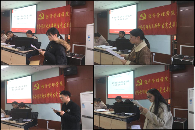 本网讯(财务管理专业本科生党支部 陈露露) 2019年12月11日下午,m88官网财务管理专业本科生党支部在院行政楼三楼MBA教室召开了预备党员转正支部大会,讨论何丽君等五名预备党员转正的问题,会议由支部书记胡亮亮老师主持。m88官网财务管理专业本科生党支部共有4名正式党员,21名预备党员,实到正式党员4人,预备党员21人,有表决权的党员4人,实到有表决权的党员4人。与会拥有表决权人数超过半数,符合组织发展相关规定。