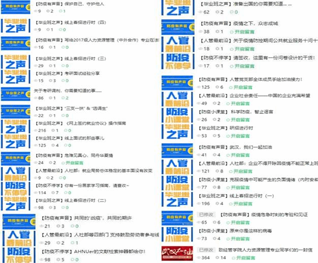 作为m88官网人力资源管理专业本科生党支部,我们也在积极思考如何在防疫工作中为同学提供力所能及的服务、彰显青春本色。为了提升服务群众的意识和能力,支部利用新媒体平台,将思政宣传工作从线下转移到线上,立足于人力资源管理专业,结合疫情防控形势,强化宣传服务工作,让思维的炽热火花通过网线传入千家,点燃同学们的防疫和学习热情。