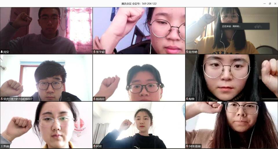 会上,支部书记安广虎带领学习习近平总书记《在湖北省考察新冠肺炎疫情防控工作时的讲话》,安老师要求支部党员要坚决贯彻落实总书记自疫情发生以来的重要指示精神,为打赢疫情防控阻击战积极主动履职尽责,继续巩固疫情防控的阶段性成果,彰显党员的责任担当,践行党员的初心使命。支部副书记范梦丽领学《习近平总书记在中央政治局常委会会议研究应对新型冠状病毒肺炎疫情工作时的讲话》和《中共教育部党组关于统筹做好教育系统新冠肺炎疫情防控和教育改革发展工作的通知》,各位党员在线分享学习感想。