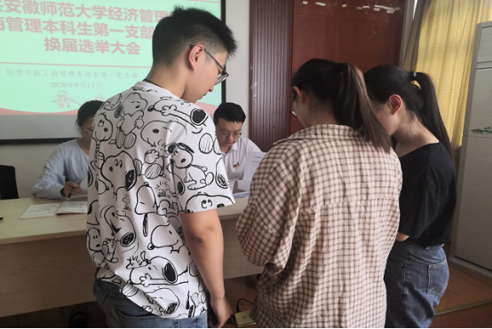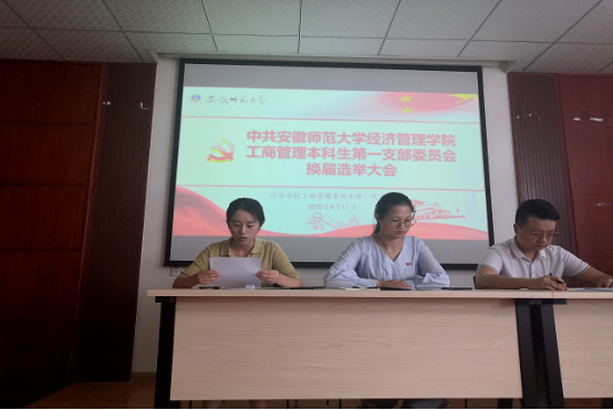 本网讯(工商管理本科生第一党支部 文/吴艺 图/朱佳佳) 2020年9月11日,中共m88官网工商管理本科生第一支部委员会在公司党员电化教育中心召开支部委员会换届选举大会,大会选举产生了支部书记和支部副书记,会议由刘胡海同志主持,于琼同志、盛亚琴同志及原财务管理本科生党支部、原人力资源管理本科生党支部全体同志参与此次会议。大会应到会有选举权的党员3名,实到会有选举权的党员3名,超过应到会人数的五分之四,符合规定人数。