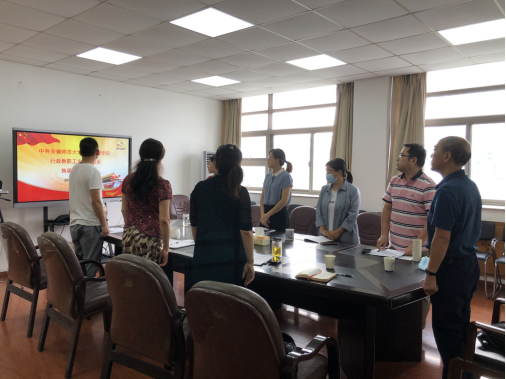 会议第一项议程即奏唱国歌,在庄严的国歌声中,全体党员起立并默默跟唱。随后,彭树燕同志代表行政教职工支部委员会作工作报告。彭树燕梳理了上届党支部到换届前开展的理论学习与支部活动情况,总结了支部的特色活动和取得的成效,也指出了支部建设的不足之处。