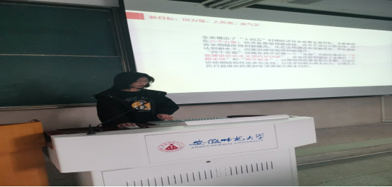 第二小组以“新征程,再出发”为主题,主要展示了小组自主学习十九届五中全会精神的成果,介绍了十九届五中全会的主要议程、新论断、新目标、新部署等方面内容,指出我国发展环境面临的深刻复杂变化,我国发展仍然处于重要战略机遇期,实现“十四五”规划和2035年远景目标,意义重大,任务艰巨,前景光明。前进道路上,我国有独特的政治优势、制度优势、发展优势和机遇优势,经济社会发展依然有诸多有利条件,我们完全有信心、有底气、有能力谱写“两大奇迹”新篇章。