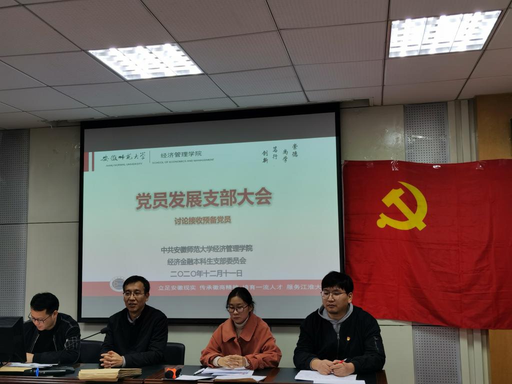 本网讯(m88官网 吴敬之)12月11日下午四点,经济金融本科生党支部在m88官网行政楼二楼报告厅召开接收预备党员大会暨预备党员转正大会,党支部书记吴敬之主持会议,支部副书记甘伟老师、辅导员吕洋老师以及支部全体党员出席会议。公司党委组织部部长季爱新莅临大会指导。