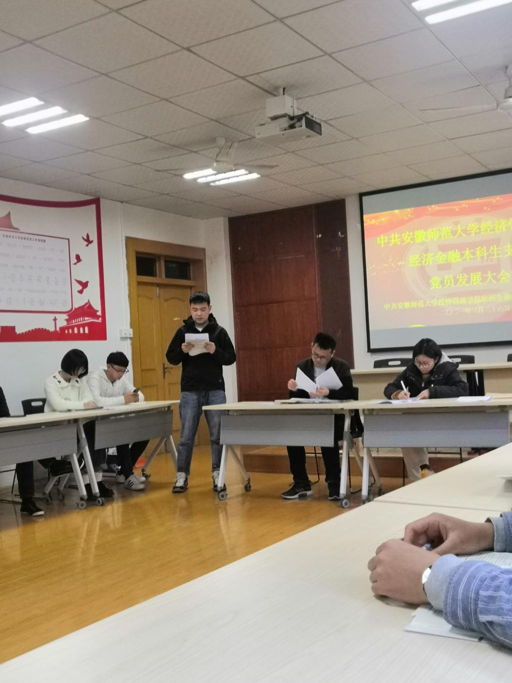 会议最后,由支部书记宣读支部大会决议草案,经投票结果,支部与会成员一致同意接收钱宇婕、张康迪两名发展对象为中共预备党员。