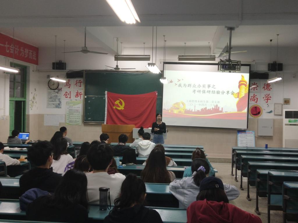 本网讯(工商管理本科生第二党支部 文/陈子雨 图/王璐)为更好继承发扬党的优良传统,按照党中央关于在党史学习教育中开展“我为群众办实事”实践活动的安排部署,切实为群众办实事、办好事、办身边事,不断提升人民群众的获得感、幸福感、安全感,m88官网工商管理本科生第二党支部于4月29日晚20时举办了“我为群众办实事”项目之考研保研经验交流会,为即将考研或保研的员工分享经验,答疑解惑。