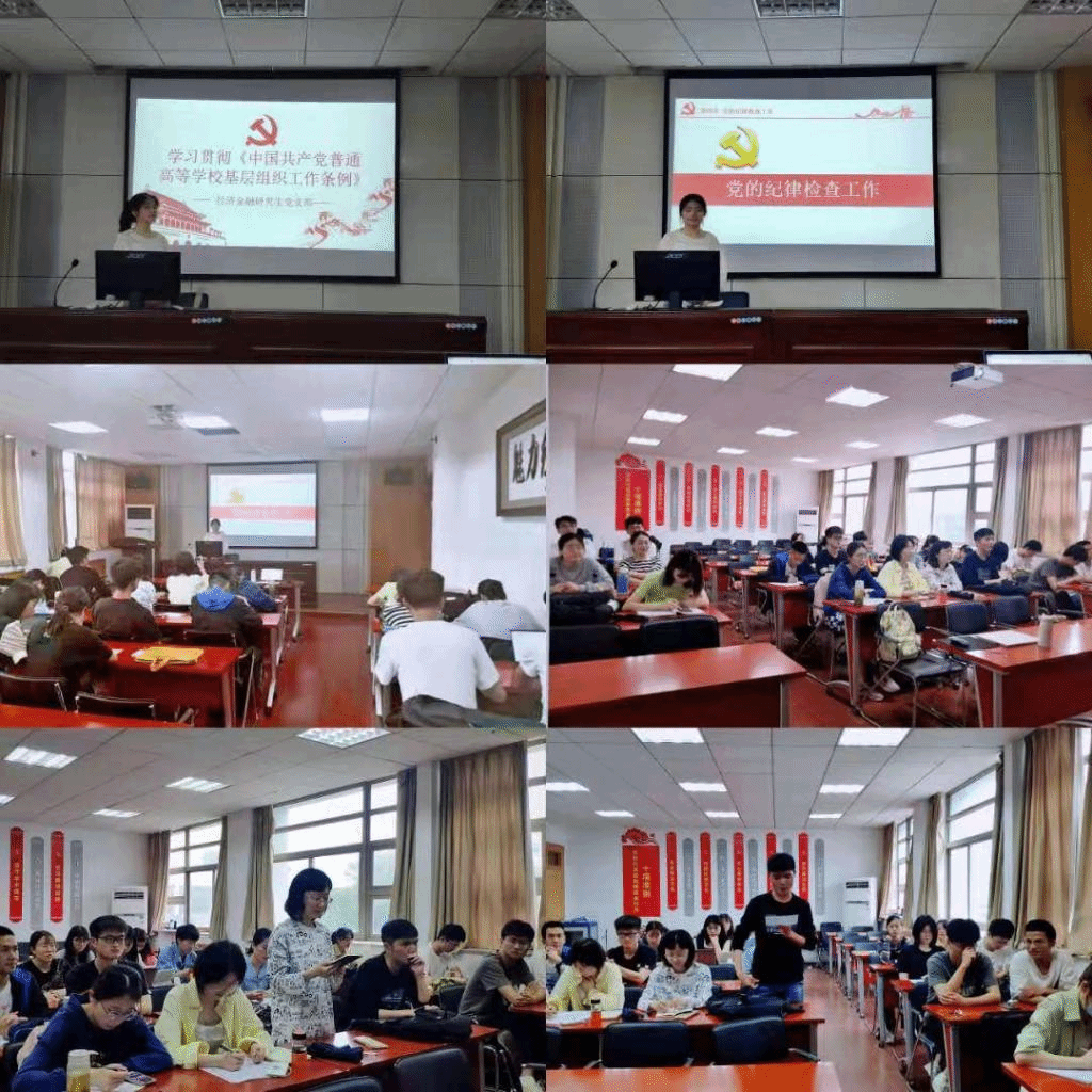活动伊始,支部副书记周刘安带着大家重点学习了第四章《党的纪律检查工作》、第五章《党员队伍建设》,周刘安表示:基层党组织是贯彻落实党中央决策部署的“最后一公里”,经济金融研究生党支部必须高举中国特色社会主义伟大旗帜,以马克思列宁主义、毛泽东思想、邓小平理论、“三个代表”重要思想、科学发展观、习近平新时代中国特色社会主义思想为指导。