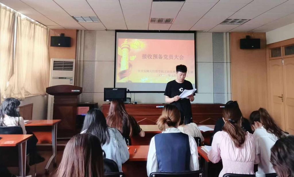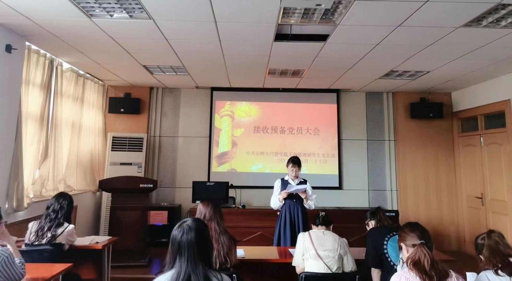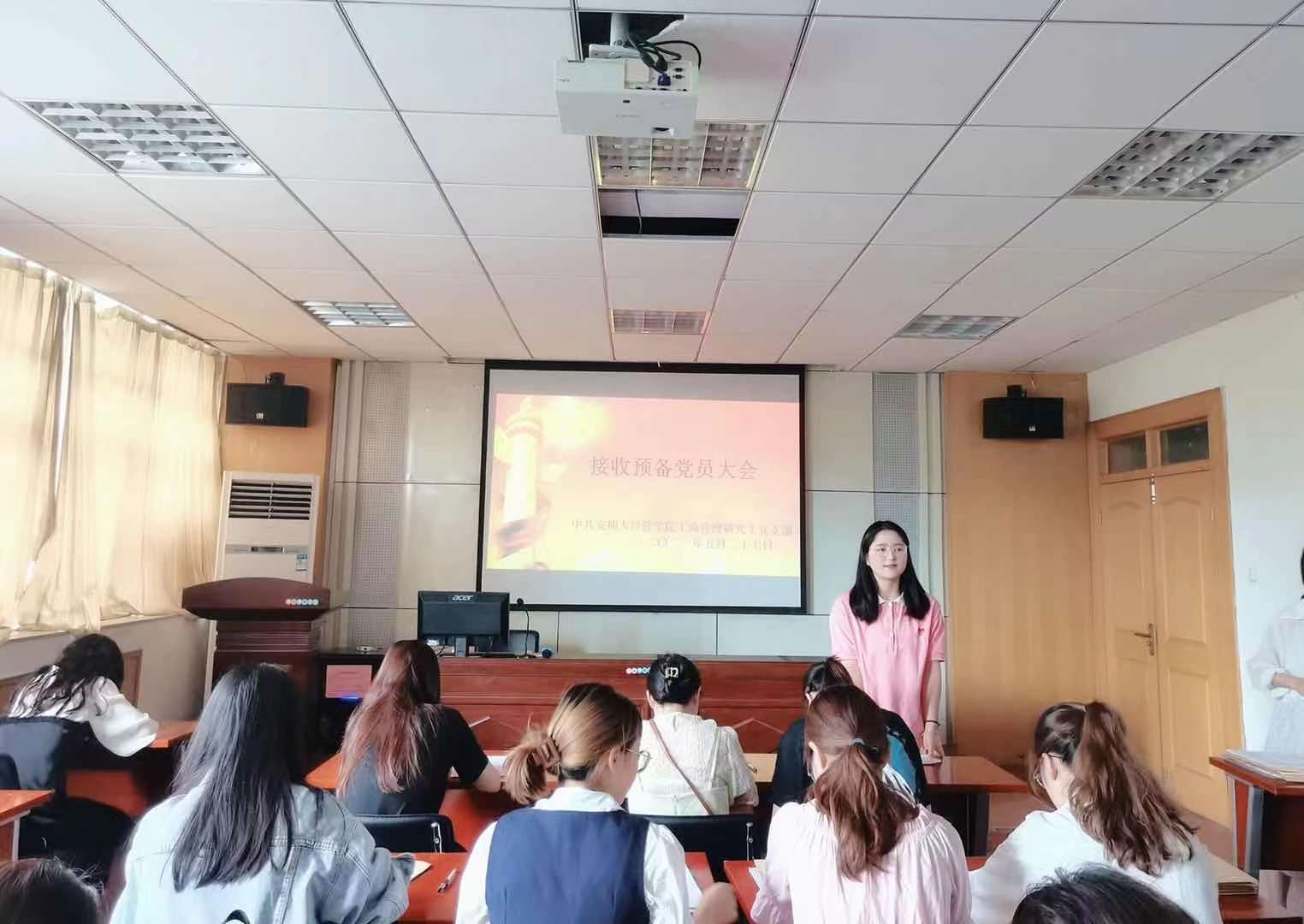 本网讯(m88官网林晨)2021年5月27日下午,工商管理研究生党支部在m88官网二楼报告厅召开了接受预备党员支部大会,讨论接收周婷等10位同志为中共预备党员的问题,会议由支部书记吴培主持。支部共有党员38名,实到正式党员29名,应事因病请假党员9人,实到会有表决权党员25名,超过本支部有表决权党员的半数以上,符合组织发展相关规定。