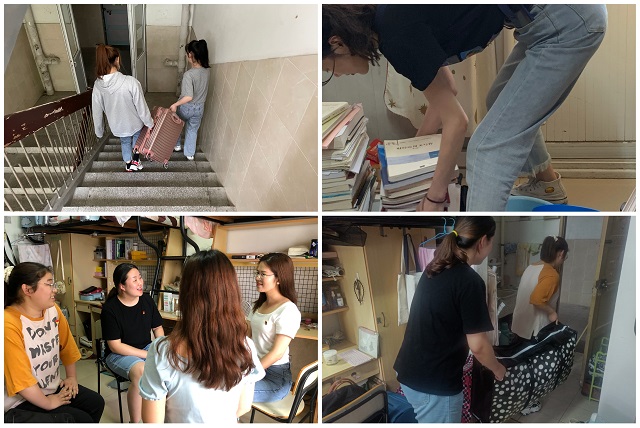 当日,18级和19级全体党员准时到达毕业生宿舍楼。全体支部党员兴致勃勃前往相应宿舍楼,协助学长学姐们进行寝室卫生整理、离校包裹打包、书籍收购以及物品回收等事项。在宿舍整理过程中,毕业班党员同学与低年级党员同学热烈交谈,并对低年级党员同学送出寄语。不论是以明信片形式还是口头形式,在他们的寄语中,纷纷提到老员工要脚踏实地学习,积极向上生活,不断充实自己,愿低年级党员同学能不负青春韶华,珍惜大学时光!