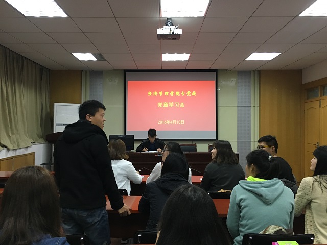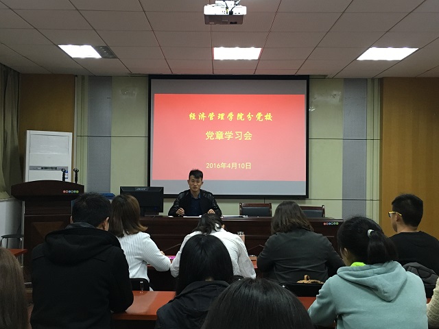 本网讯(党员教育培训班学员 陆帆)日前,习近平对在全党开展“两学一做”学习教育作出重要指示,强调“两学一做”学习教育是加强党的思想政治建设的一项重大部署,是协调推进“四个全面”战略布局特别是推动全面从严治党向基层延伸的有力抓手,而学习党章党规是“两学一做”的重要内容,为此,4月10日19:00,m88官网2016年党员培训教育班班主任安广虎老师在行政楼二楼报告厅与培训班学员共温党章。