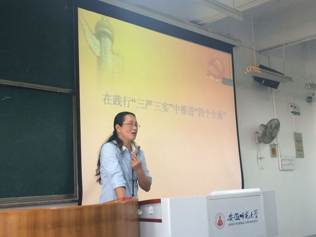 本次授课的主题为“在践行‘三严三实’中推进‘四个全面’”。首先,陈董事长带领学员们初步了解了“三严三实”的基本内容——“严于律己”、“严于用权”、“严于修身”和“谋事要实”、“创业要实”、“做人要实”,并通过讲解“三严三实”提出的背景,使广大学员深入了解“三严三实”专题教育的内涵。随后,她介绍了“四个全面”的内容——“全面建成小康社会”、“全面深化改革”、“全面依法治国”、“全面从严治党”,并分析其形成过程的三个阶段,让员工清晰具体的了解“四个全面”的性质。她分条分点地逐一讲授“四个全面”的具体内涵,向同学们阐述了“四个全面”的重要意义。台下听讲的学员神情专注,不时记下陈董事长讲话的要点,现场秩序井然,气氛良好。接着,陈董事长分析了“三严三实”与“四个全面”的关系,两者同等重要,缺一不可。之后,陈董事长向同学们回答了在开班典礼上“入党为什么?党员图什么?为党做什么?”这三个问题自己的理解,教导同学们入党是心灵的净化,是认识、热爱、发展、捍卫党的过程;入党是觉悟的提高,在生活与学习中要时刻与党中央保持一致;入党是特殊的奉献,学员们需多挑重担。她引导同学们积极思考入党的真正目的,树立正确的入党意识。最后,陈董事长鼓励学员们要甘于清贫,学会做高在学识、富在精神、帅在行动的“高富帅”与在白在品行、富在内涵、美在心灵的“白富美”,切实贯彻落实“八字真经”。