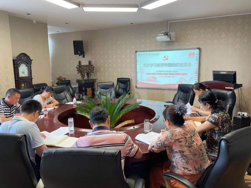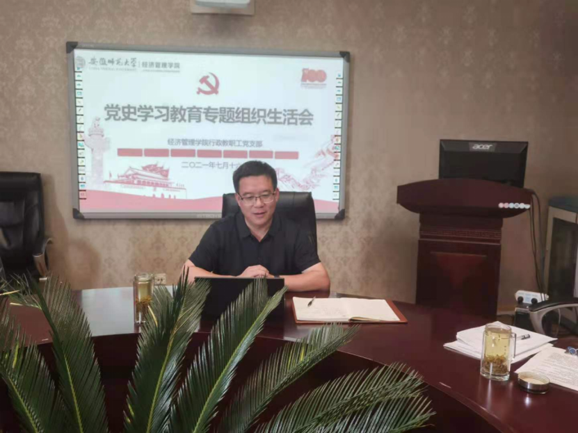 会议分两部分进行。首先李海燕代表支部汇报支部党史教育学习情况。她总结了上半年公司行政教职工党支部在党史学习教育方面进行的教育主题活动,活动形式包括集中学习和专题研讨、专家报告、主题实践等等。支部党员们通过类型丰富的理论与实践学习,结合线上与线下的学习渠道,认真执行了党史学习教育任务。她指出,在未来的学习过程中,支部在党史理论知识的学以致用上需加以实效,在服务师生的工作内容上要进一步深化。
