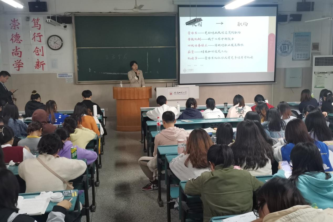 宣讲会伊始,主讲人李淮颖通过一段宣传短片简要地向同学们介绍了有关中南置地的基本定位以及企业文化。她表示,中南置地是一家优秀的主流房企,公司内部结构简单透明,并且注重对人才的引进与管理,这使同学们对中南置地有了初步了解。紧接着,她围绕此次招聘的岗位向同学们阐述了公司的人才培养计划“南埔生计划”、职业晋升通道以及优厚的薪酬福利待遇等,并向同学们发出了诚挚的邀请,欢迎同学们加入中南置地。随后,李淮颖向同学们介绍了中南置地的招聘流程,并提醒有意向的同学及时投递简历。最后,本校优秀毕业生张月玲向同学们分享了在中南置地的工作感受和对未来的设想,并结合自身经历,鼓励学弟学妹们学好专业技能、把握就业机会。